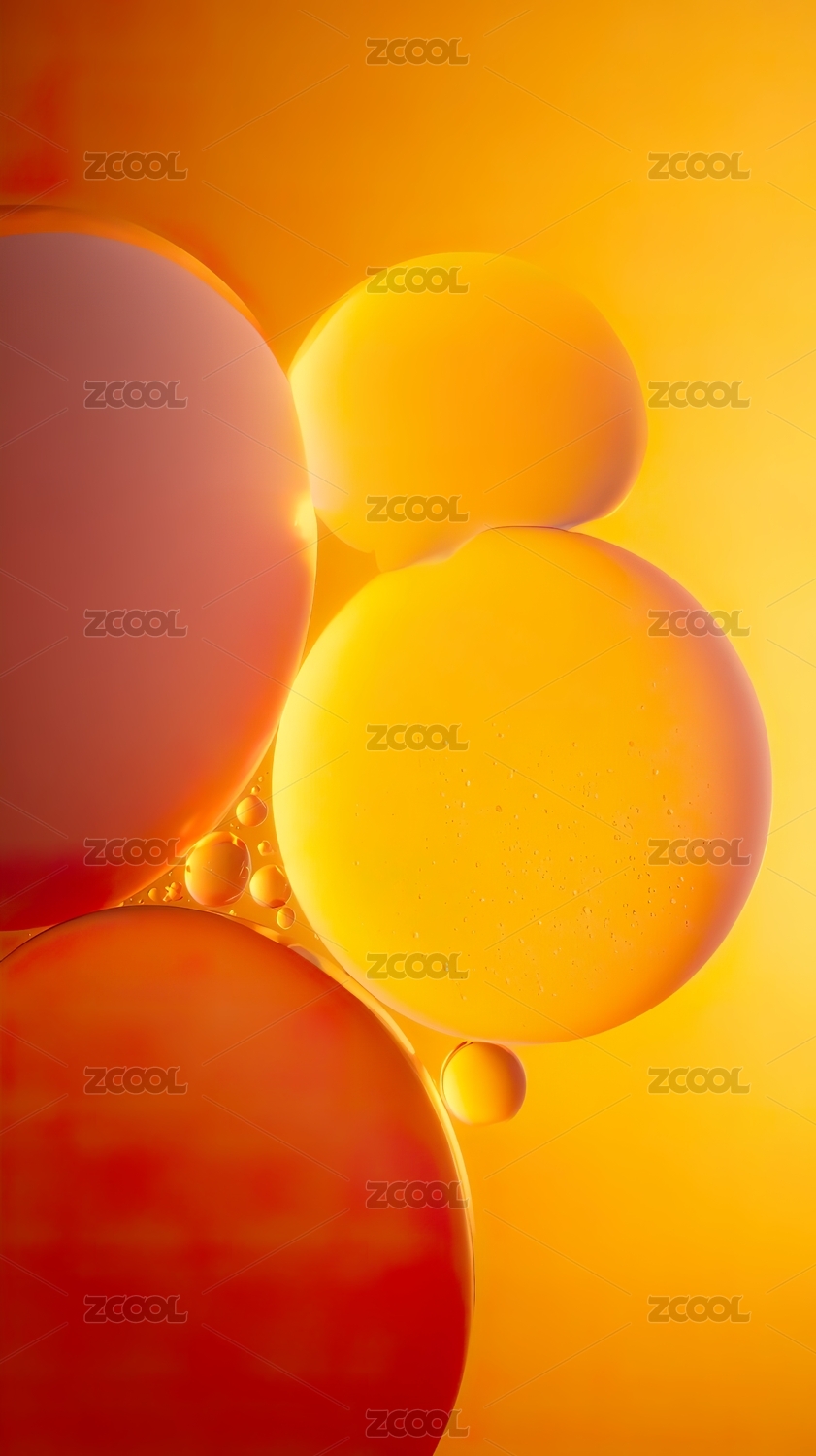 橙色液体气泡在光线下漂浮