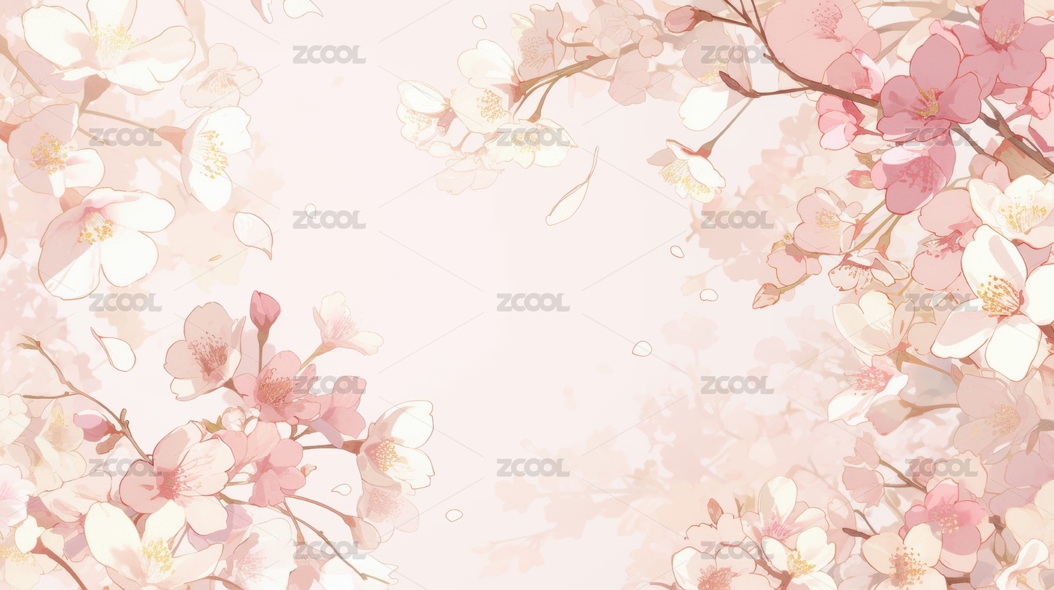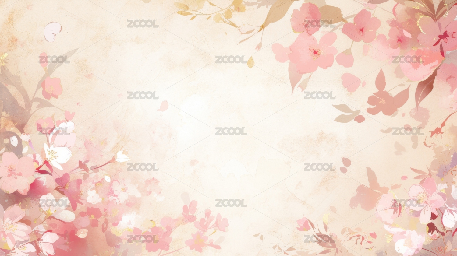 粉色花卉环绕的淡雅背景