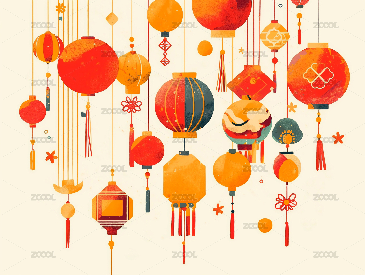 中秋国庆元旦春节元宵节烟花灯笼鞭炮矢量图