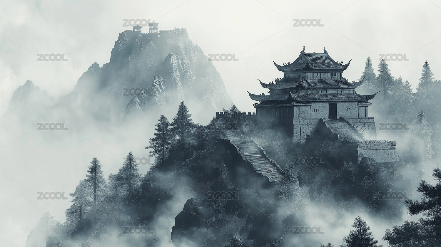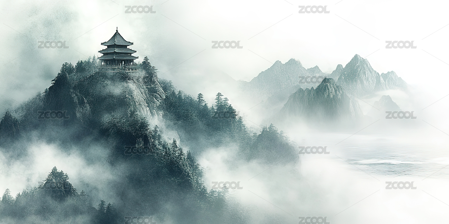 山水画中国画水墨画国风国潮梦幻唯美AI数