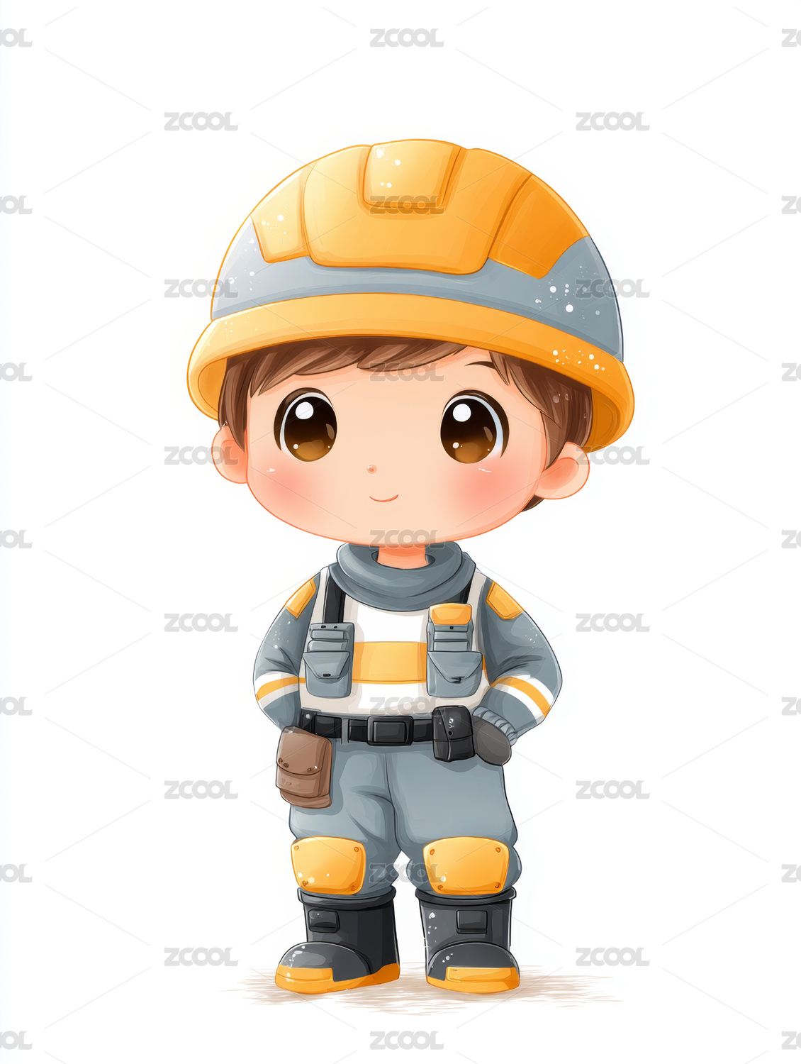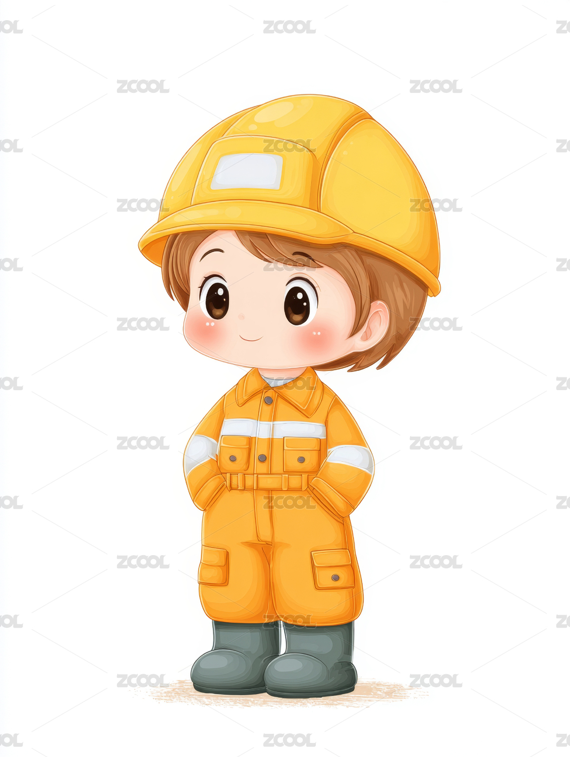 卡通人物戴着黄色安全帽