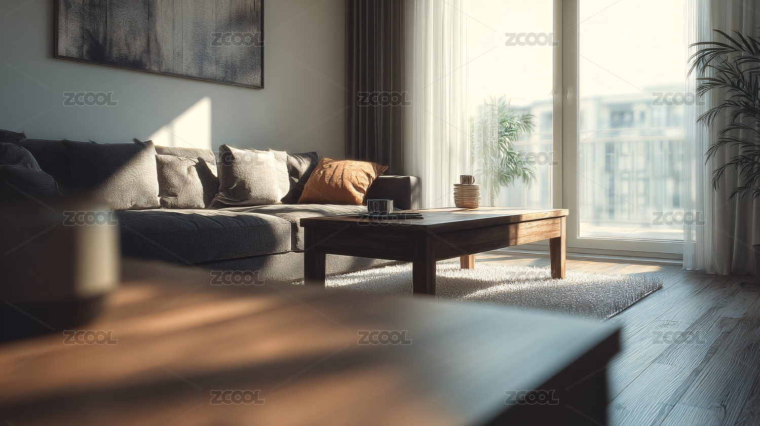 家居,现代,极简,设计,空间,柔和,光线,植物,沙发,室内