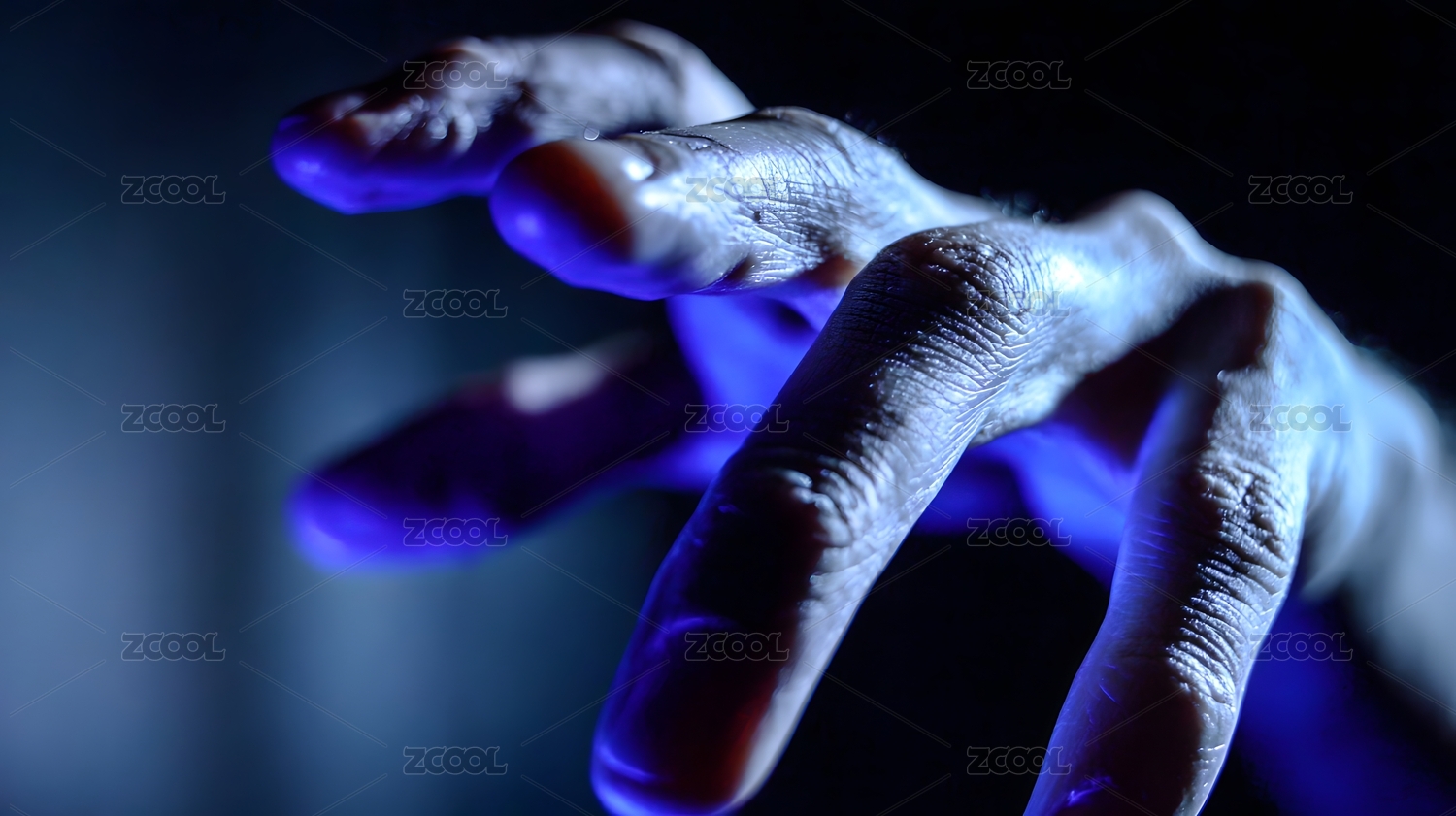 神秘蓝光下的手部特写