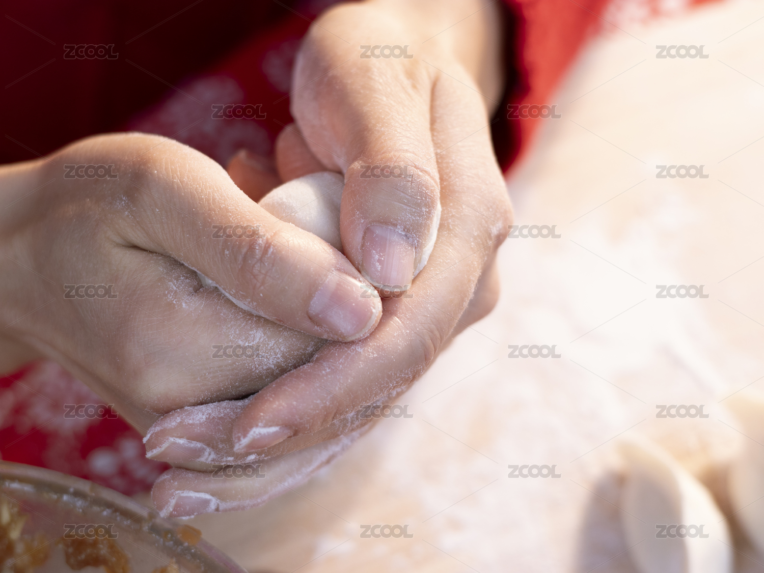 双手捏饺子特写