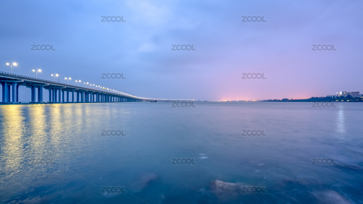 杭州钱塘江之江大桥黄昏日落建筑风光