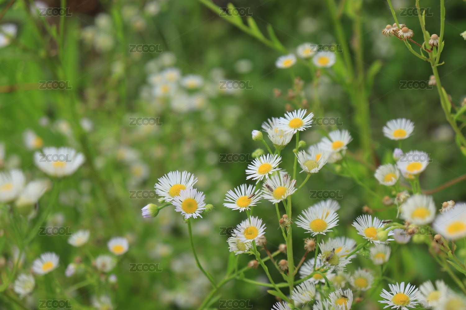 路边白色的野菊花