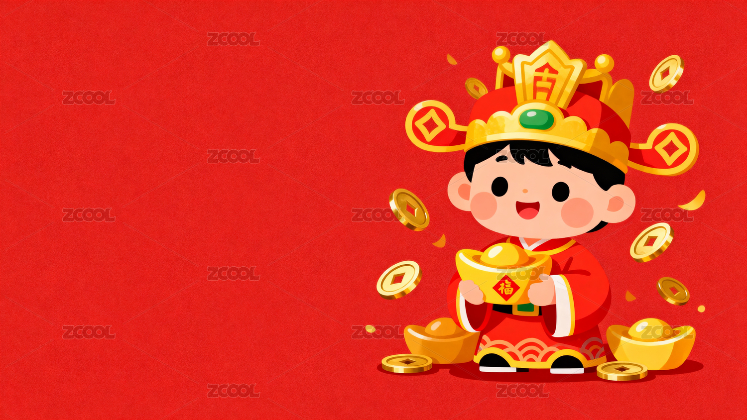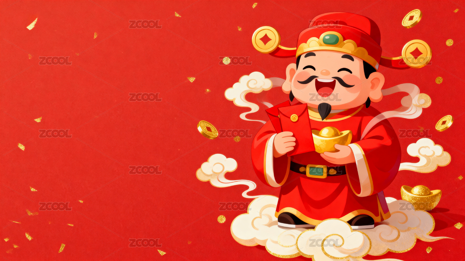 中国风,古风,红衣,金元宝,金币,福袋,祥云,富贵,喜庆,新年