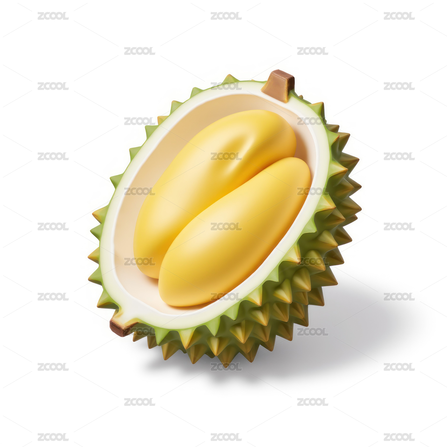 白底榴莲整颗与切开榴莲果肉带绿叶