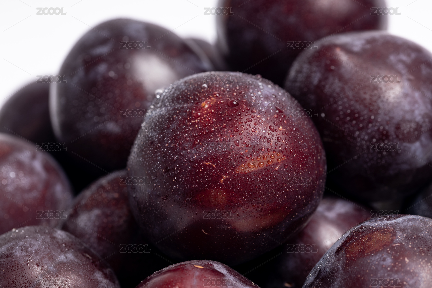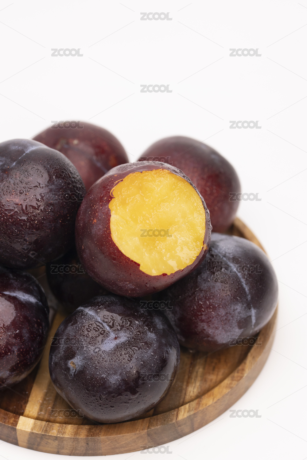 白底上一盘新鲜西梅