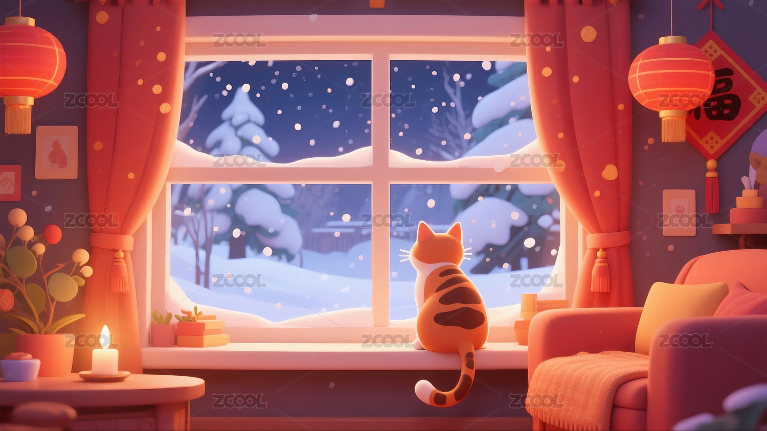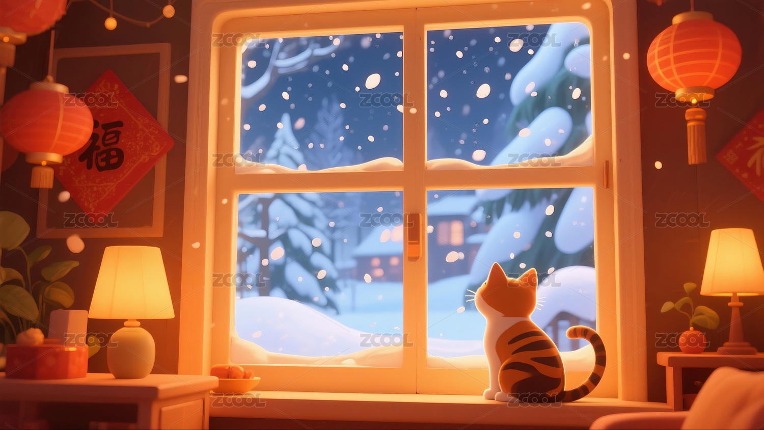 室内,窗户,小猫,动物,宠物,冬天,下雪,小雪,大雪,冬至