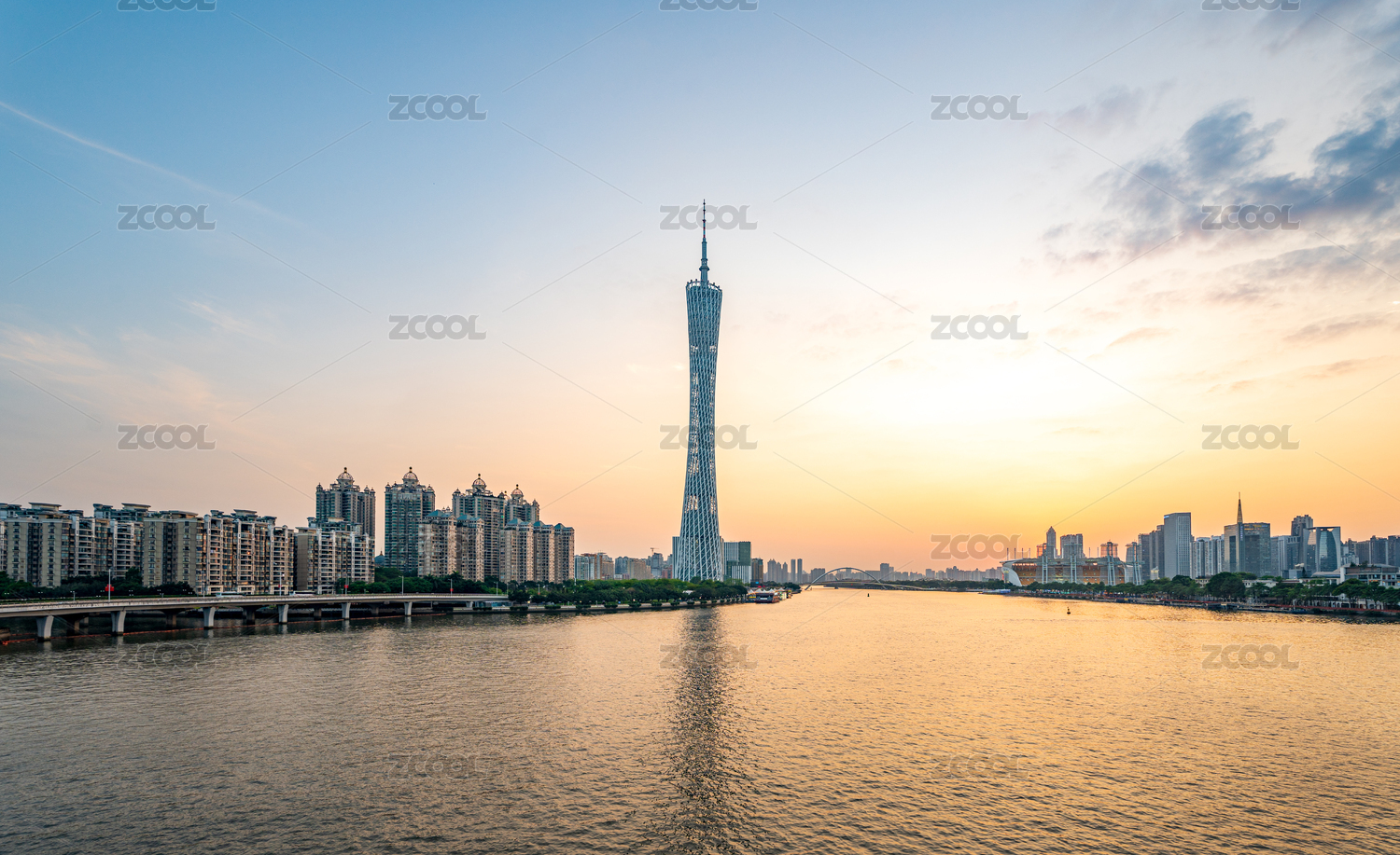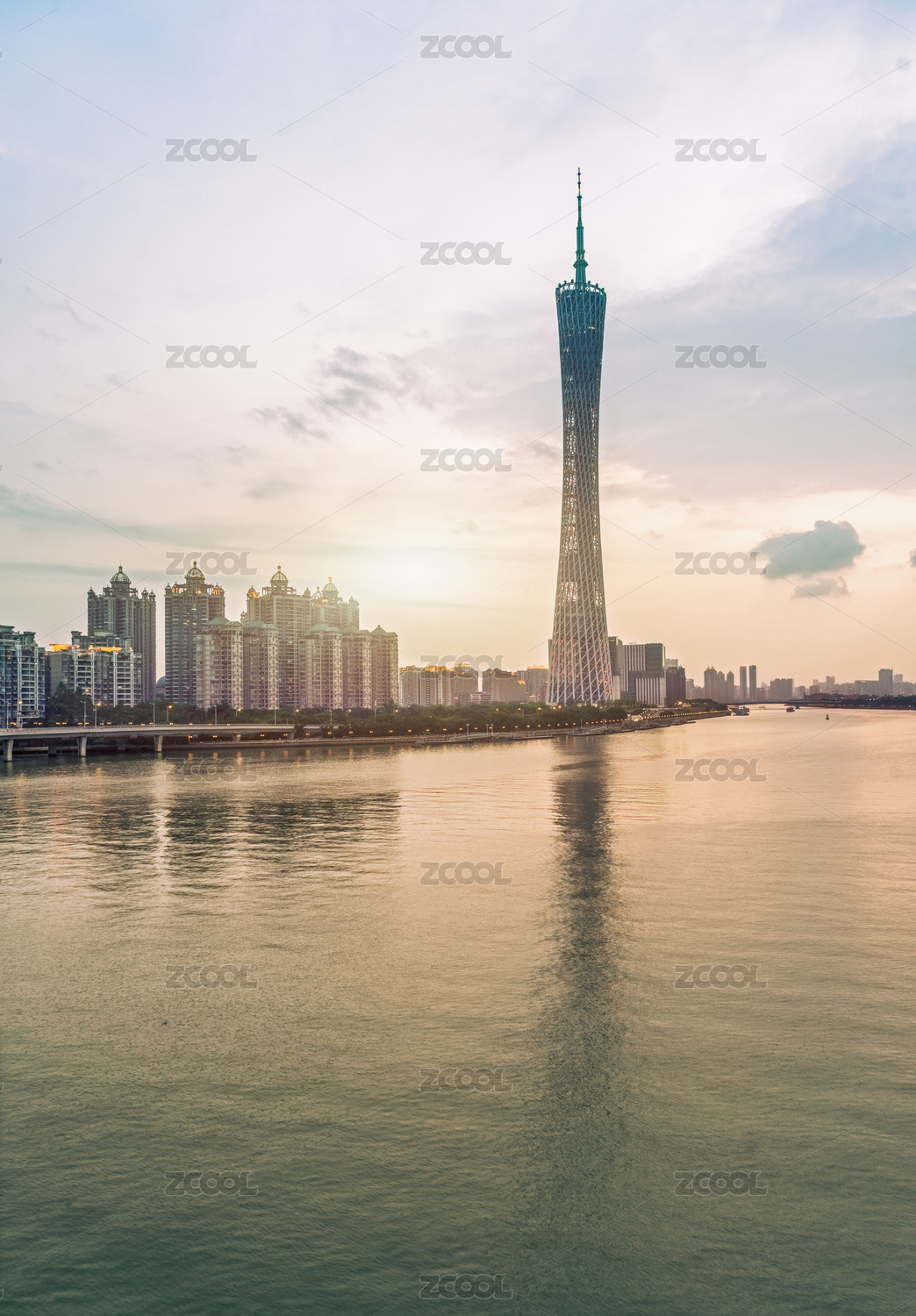 Guangzhou Tower Building Dusk Pearl River Guangzhou China
