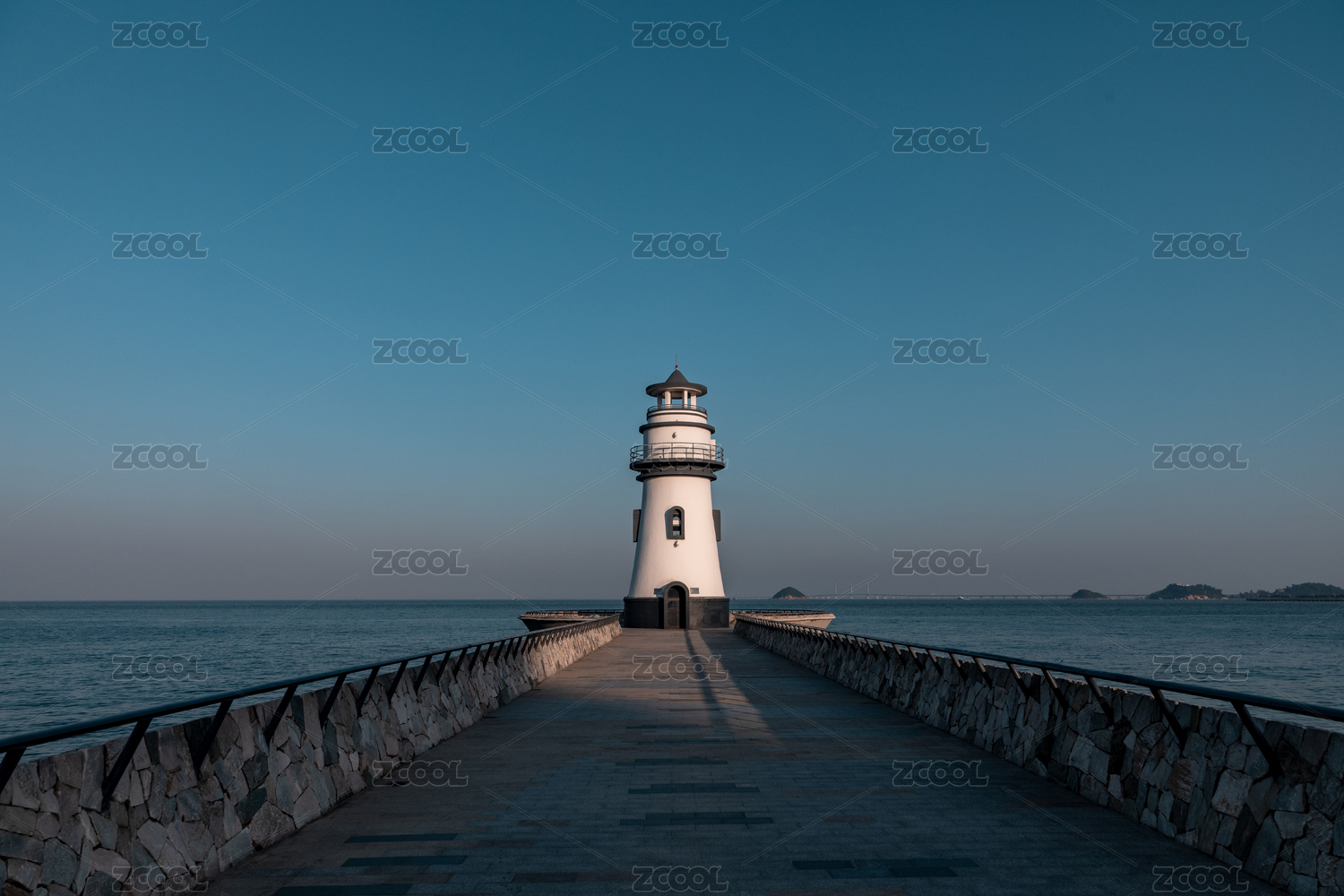 中国广东珠海海滨泳场灯塔早上晨曦风光