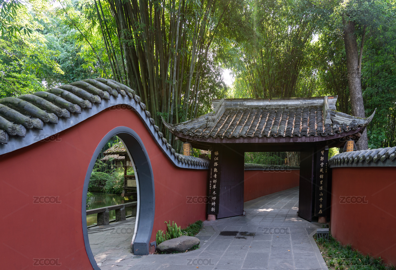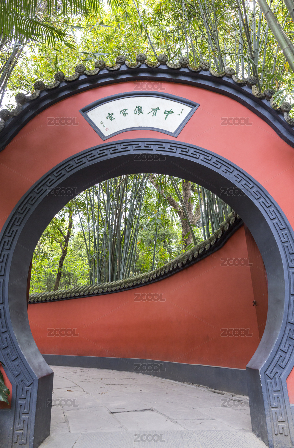 中国四川成都杜甫草堂博物馆花径内的圆形拱门