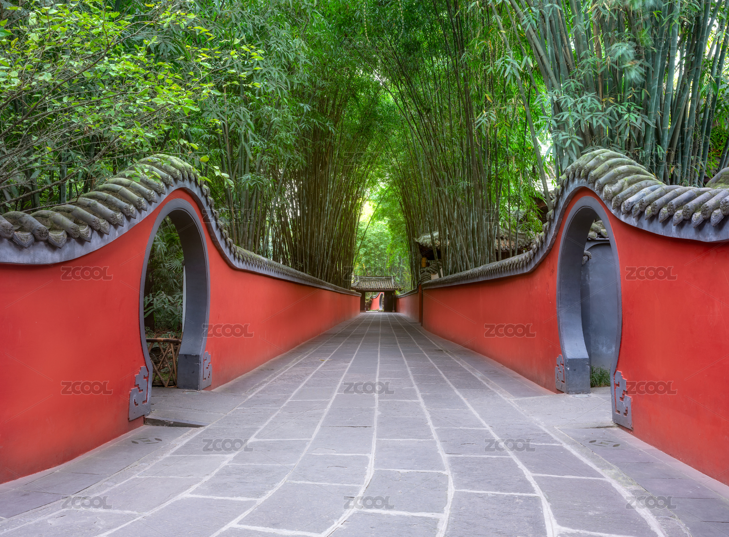 中国成都杜甫草堂博物馆花径竹林与红墙