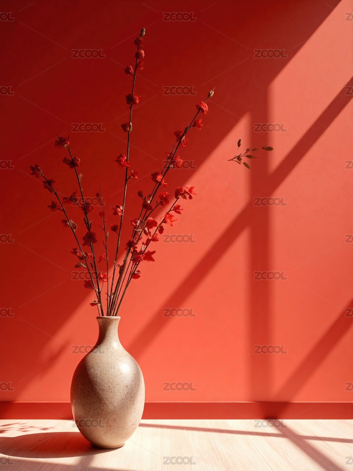红色花瓶插花