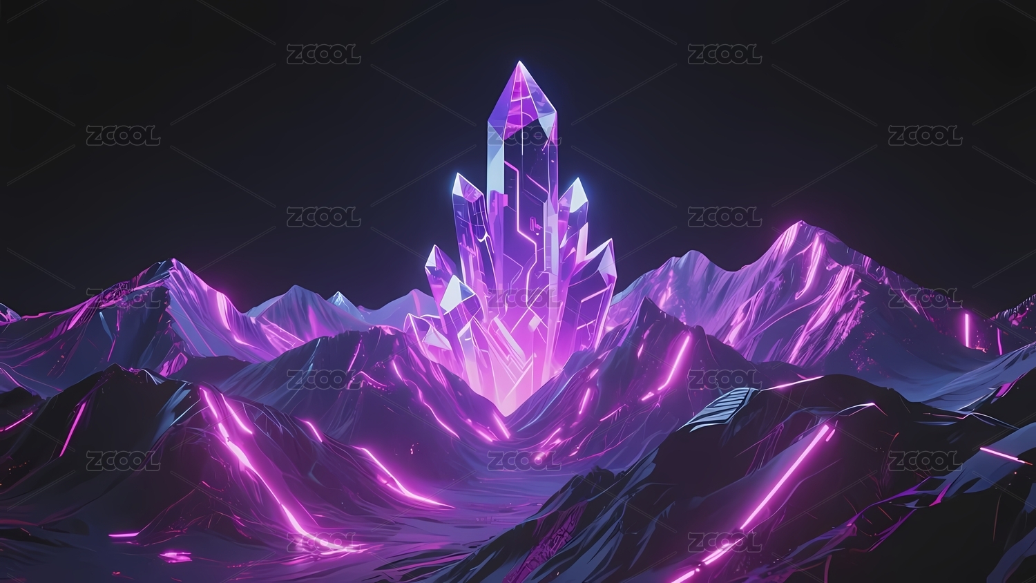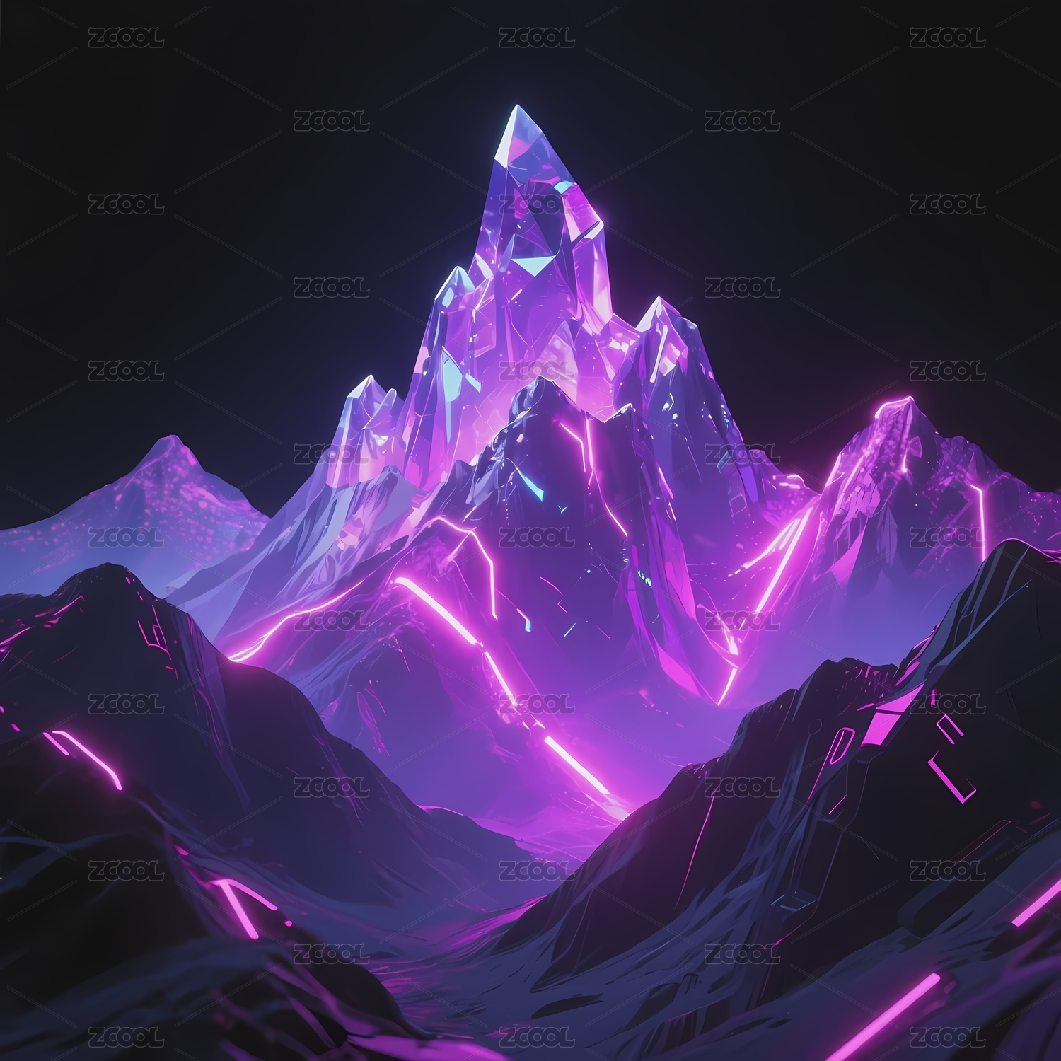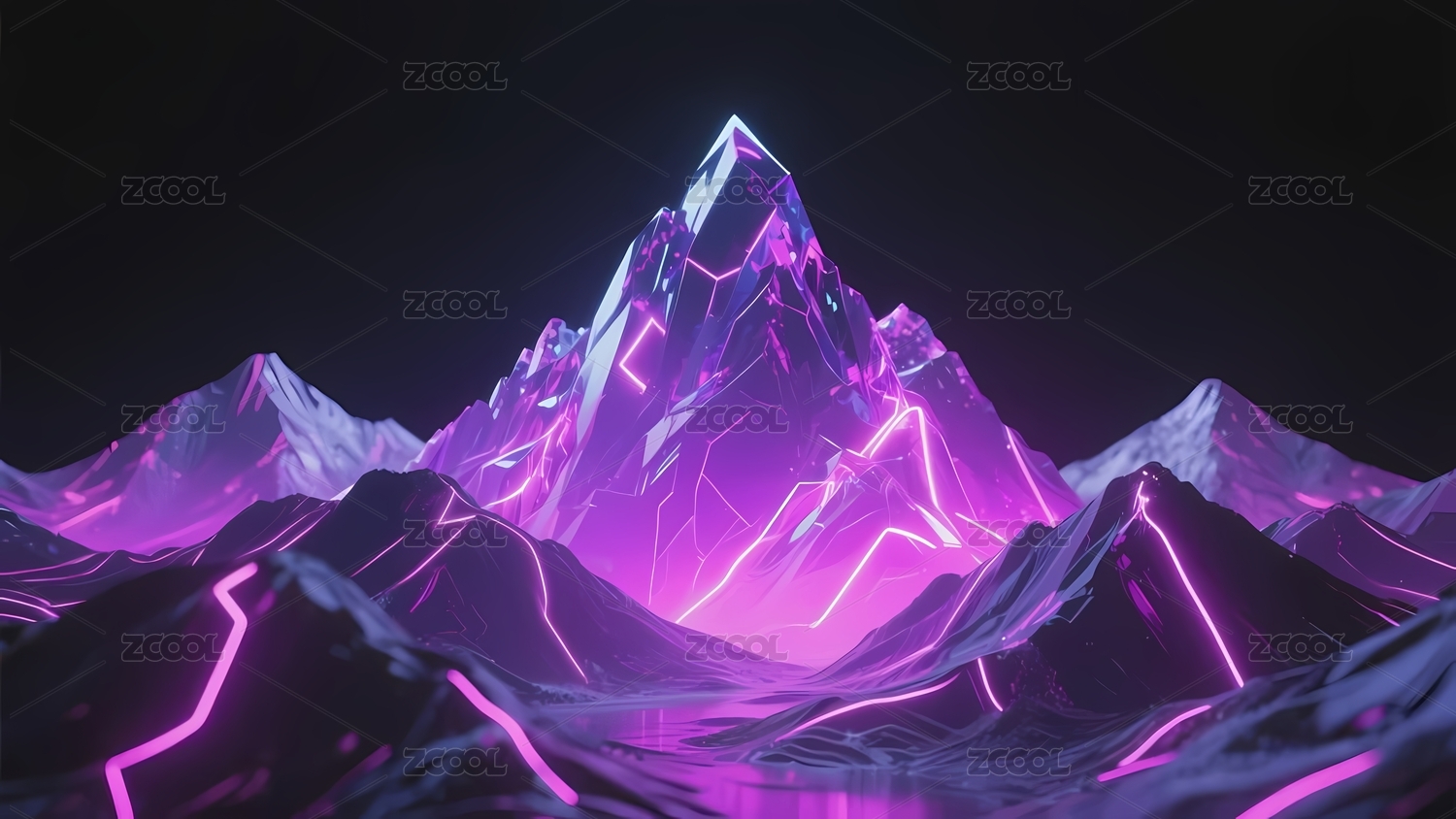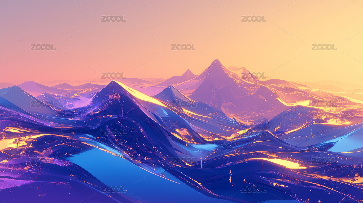 炫丽多彩艺术感的山脉3D全息场景背景素材