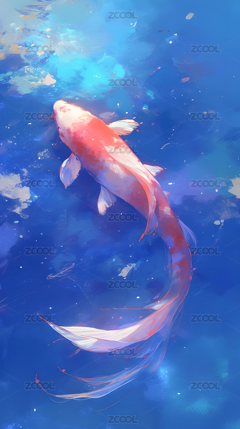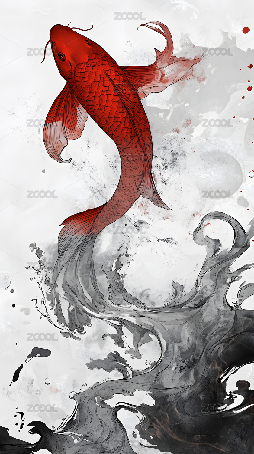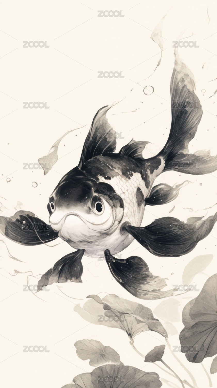 国风,中国文化,水彩,水墨,插画,神话,鱼,绘本,大鱼,金鱼