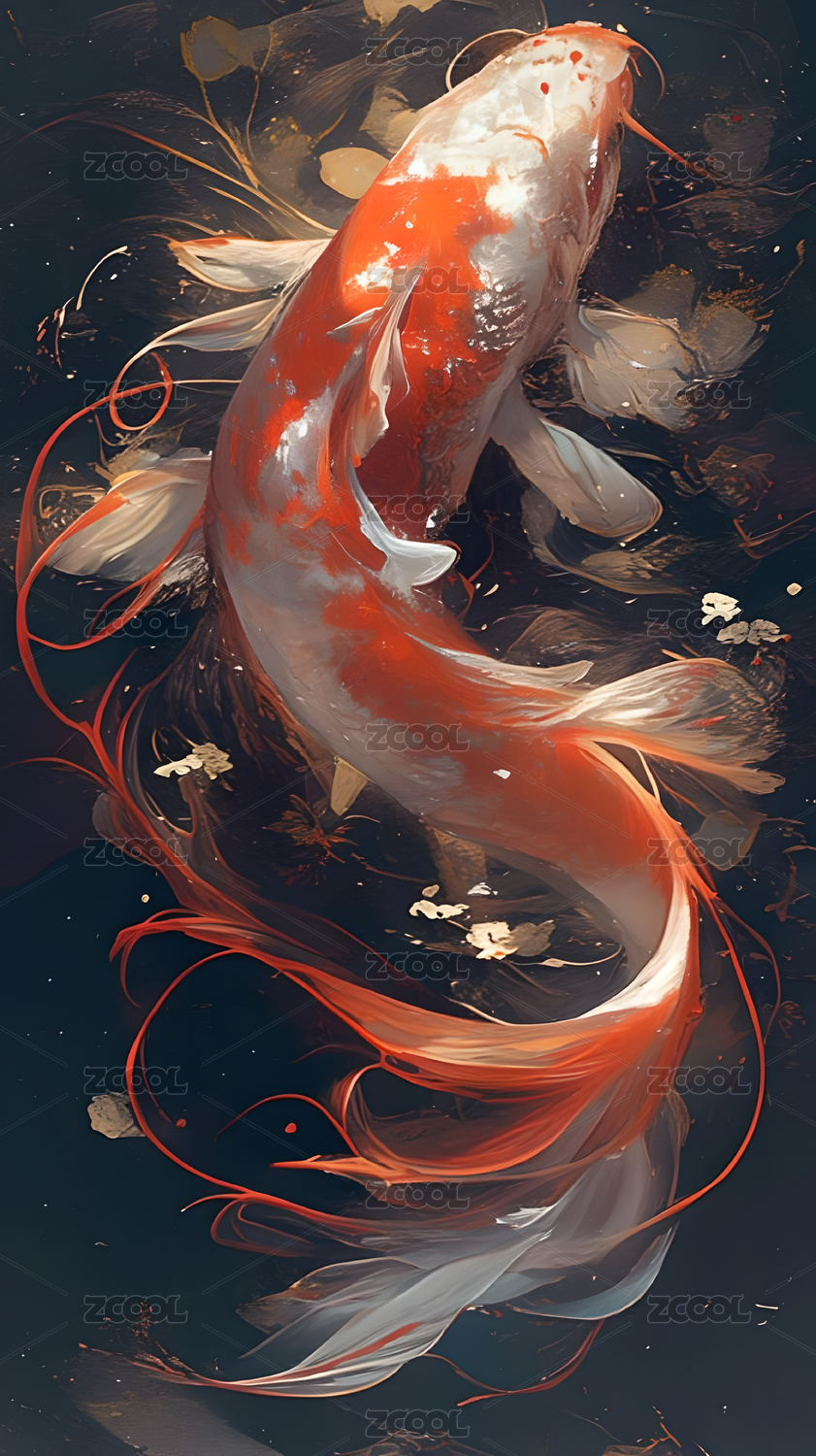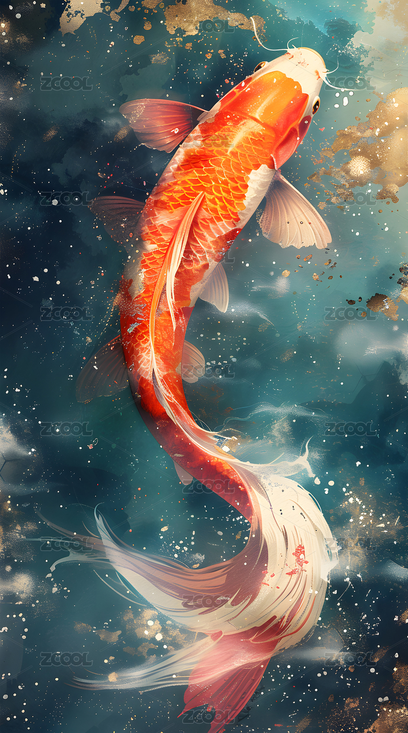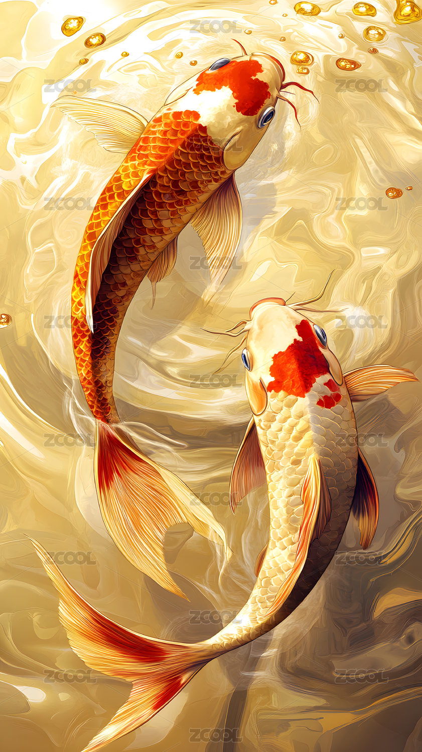 国风,中国文化,水彩,水墨,插画,神话,鱼,绘本,大鱼,金鱼
