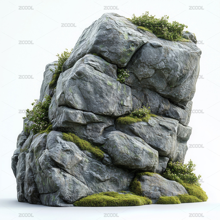 小草,3D,白色背景,广告背景图,植物,渲染图,石头,坚硬,设计元素,越野