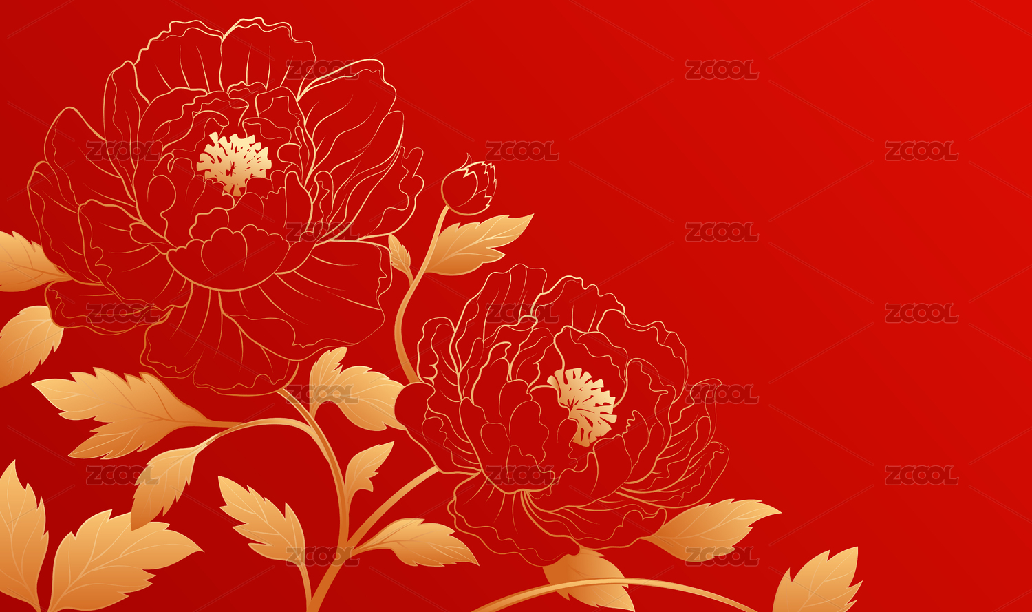 金色牡丹红色背景