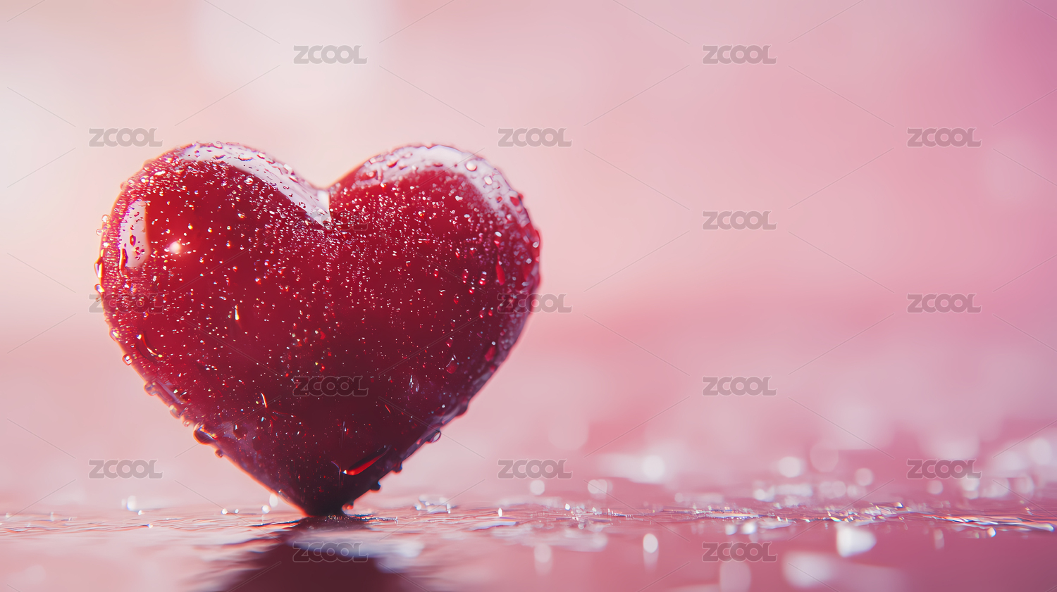 水滴覆盖的红色水晶心形