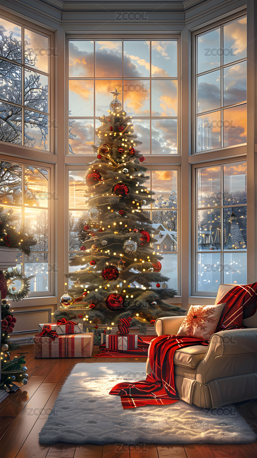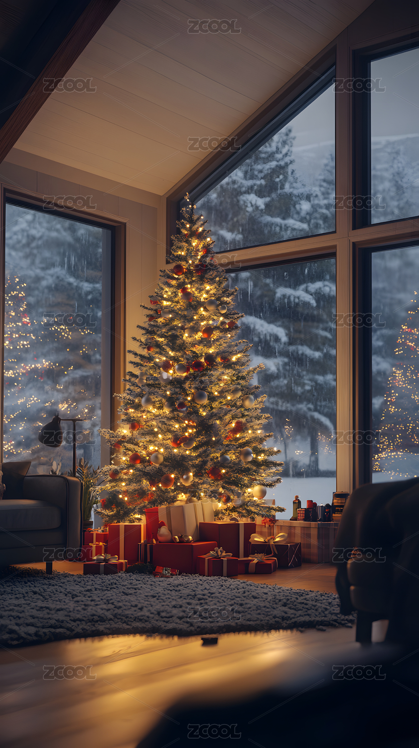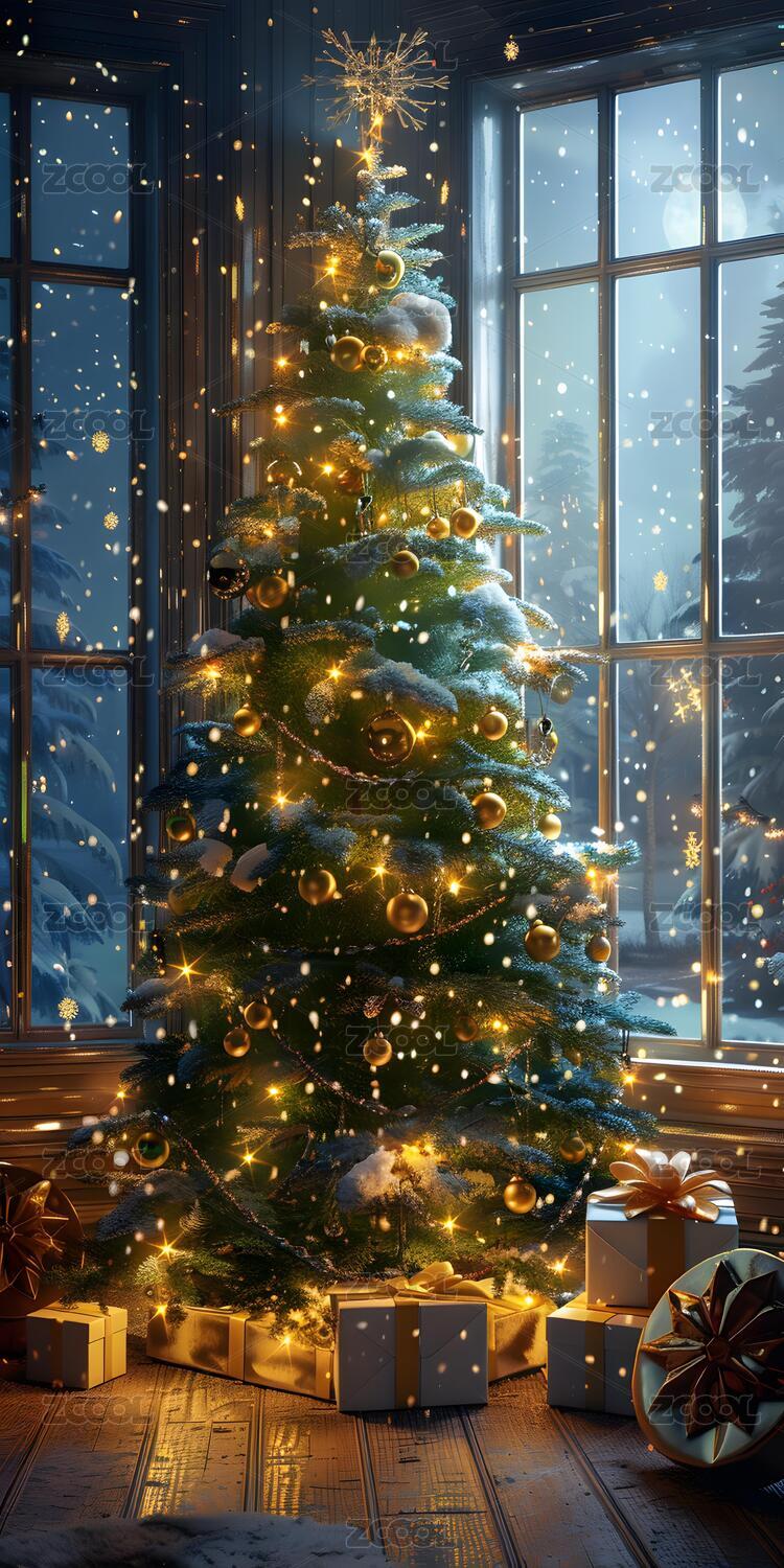 3D,三维立体,灯光,夜晚,氛围,节日,庆祝,装饰,圣诞节,圣诞树