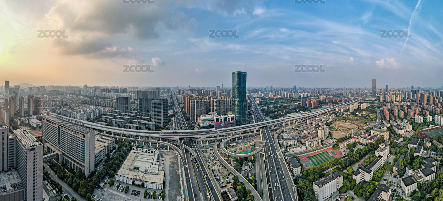 中国安徽合肥西二环长江西路桥航拍全景日落