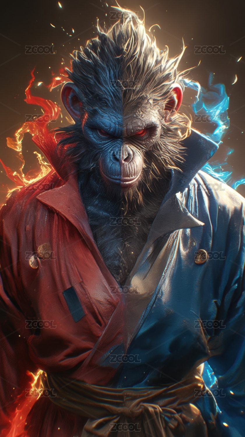 大猩猩,猴子,类人猿,猿猴,复古,时尚,长发,祖先,部落,首领