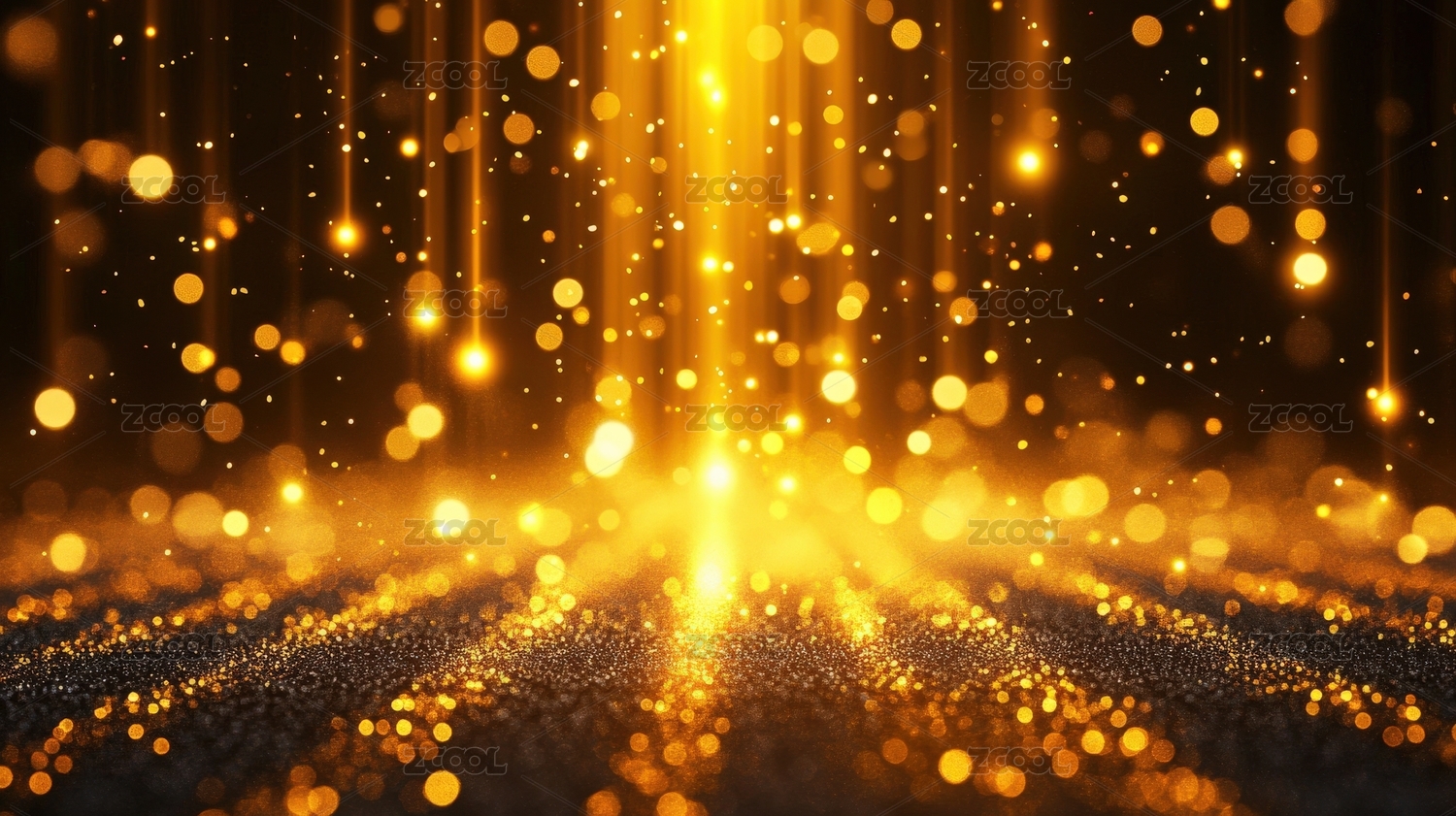 金色粒子如波浪舞动营造梦幻年会视觉背景