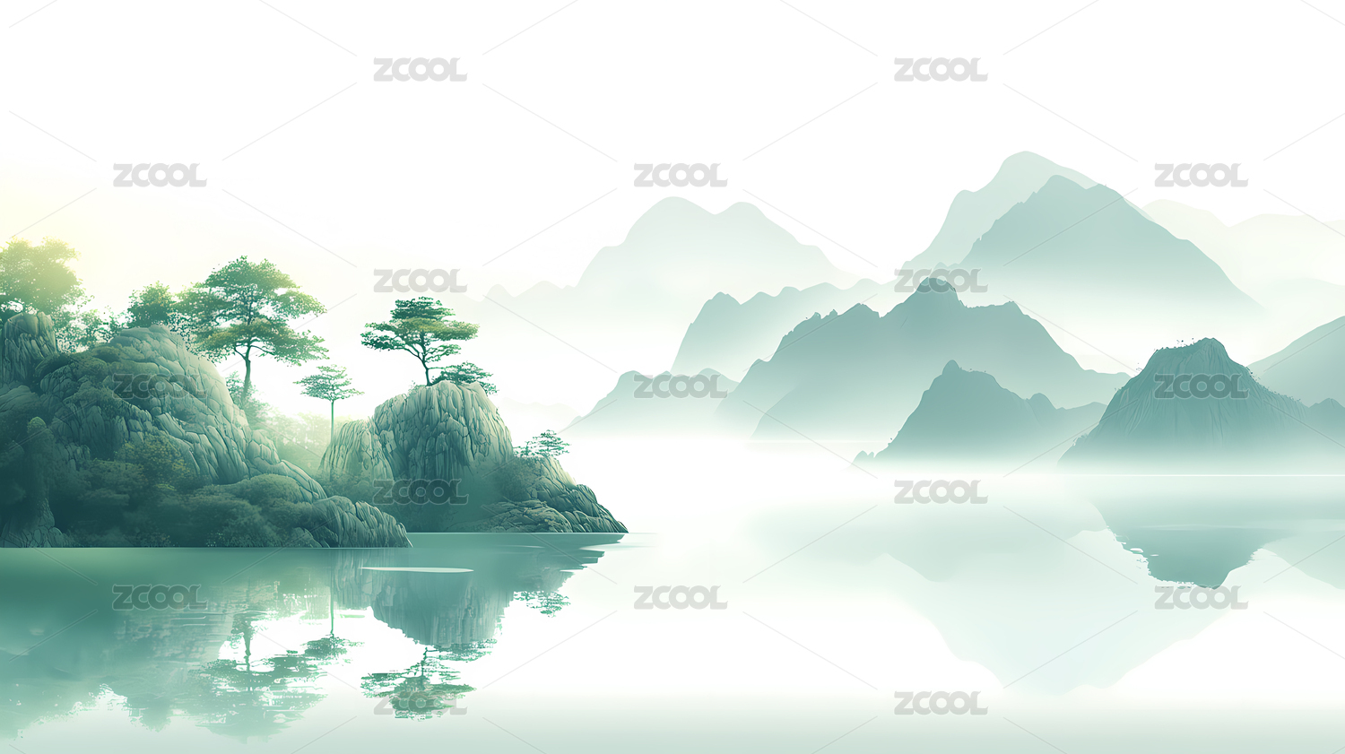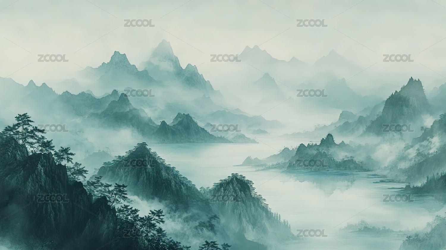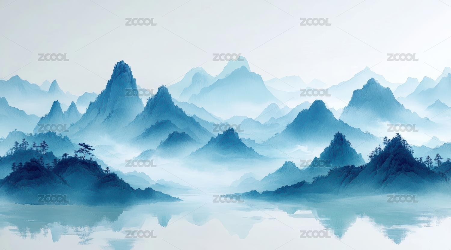 意境,远山,留白,山峰,山川,风景,插画,流水,高山,云雾