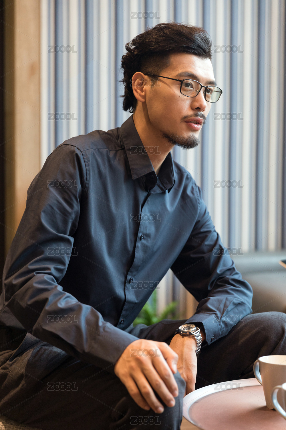 一名商务男士在咖啡厅使用笔记本电脑工作