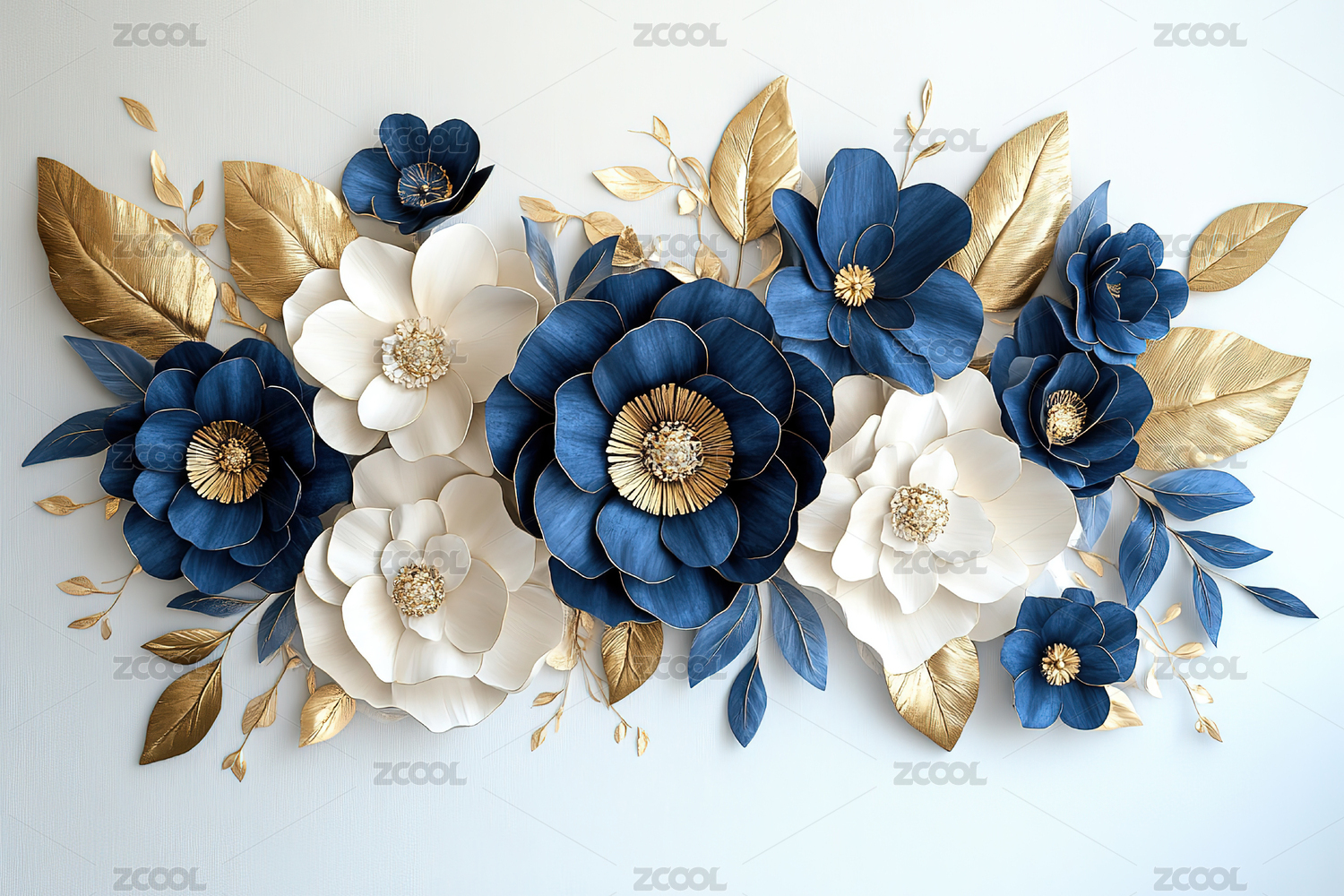 花朵和金色叶子立体插画