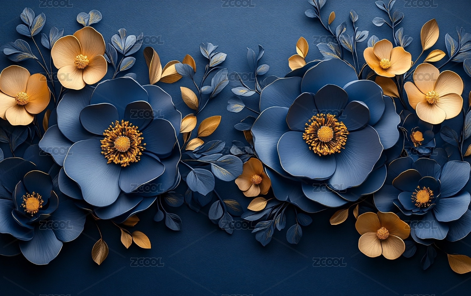 深蓝底金色花卉装饰图