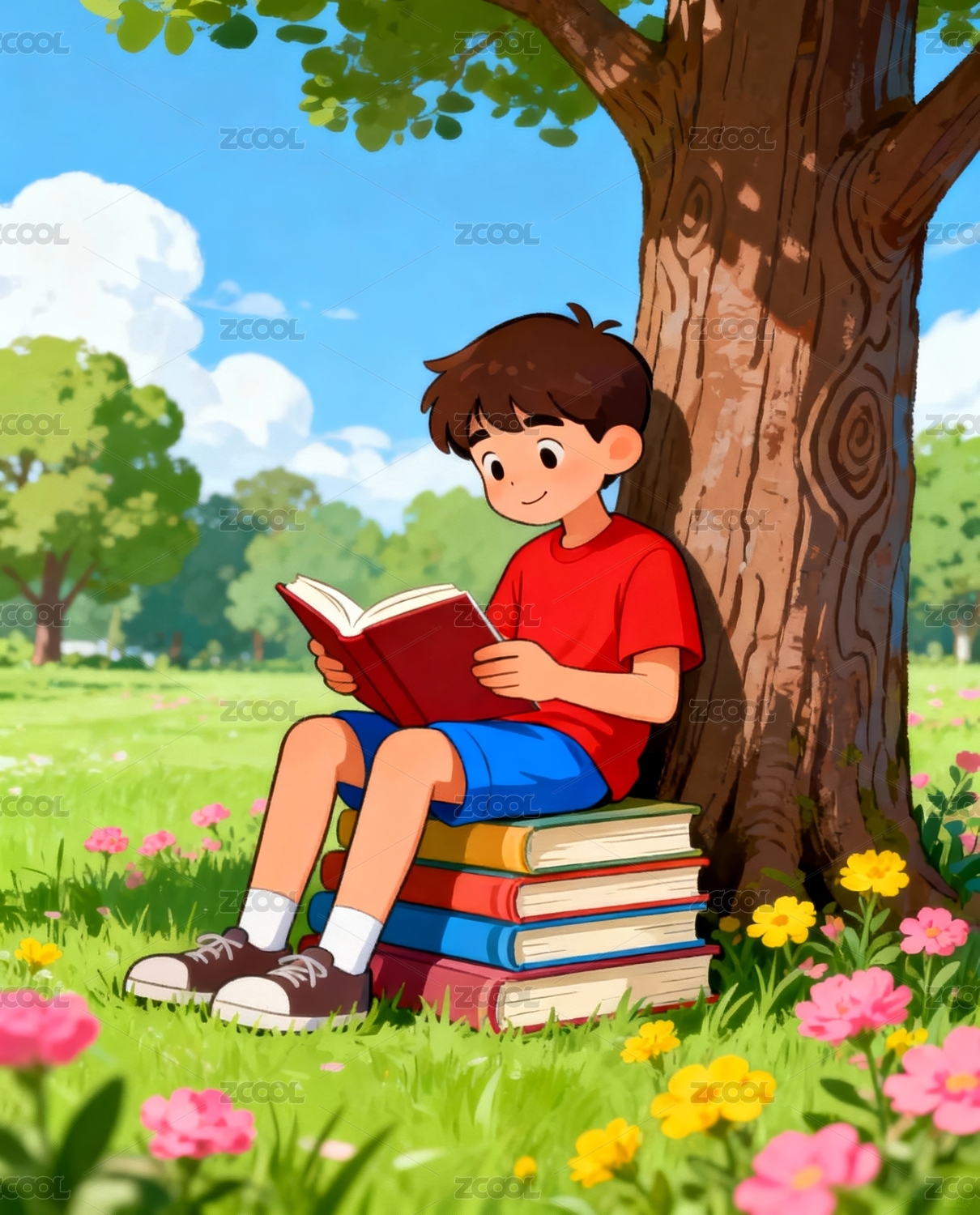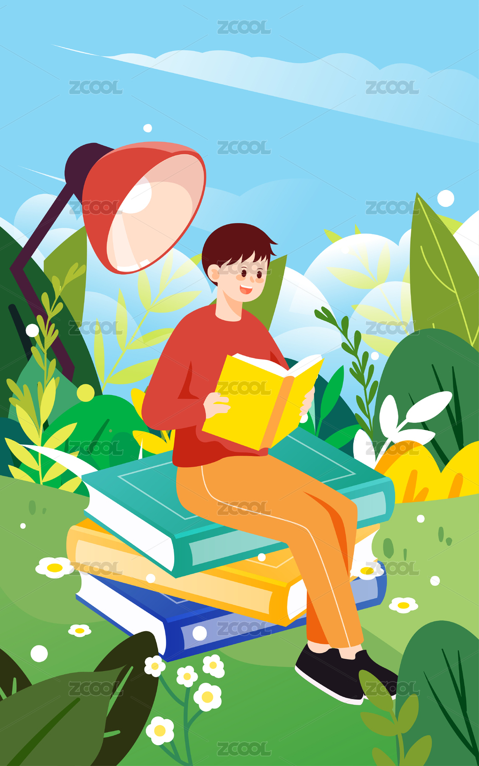 男孩,男生,卡通,学生,读书日,四月,夏天,春天,草坪,校园