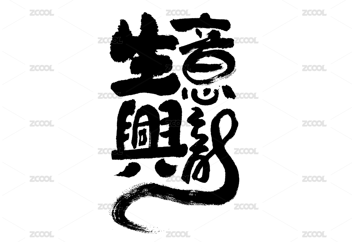 生意兴龙龙年水墨复古国潮毛笔书法艺术字