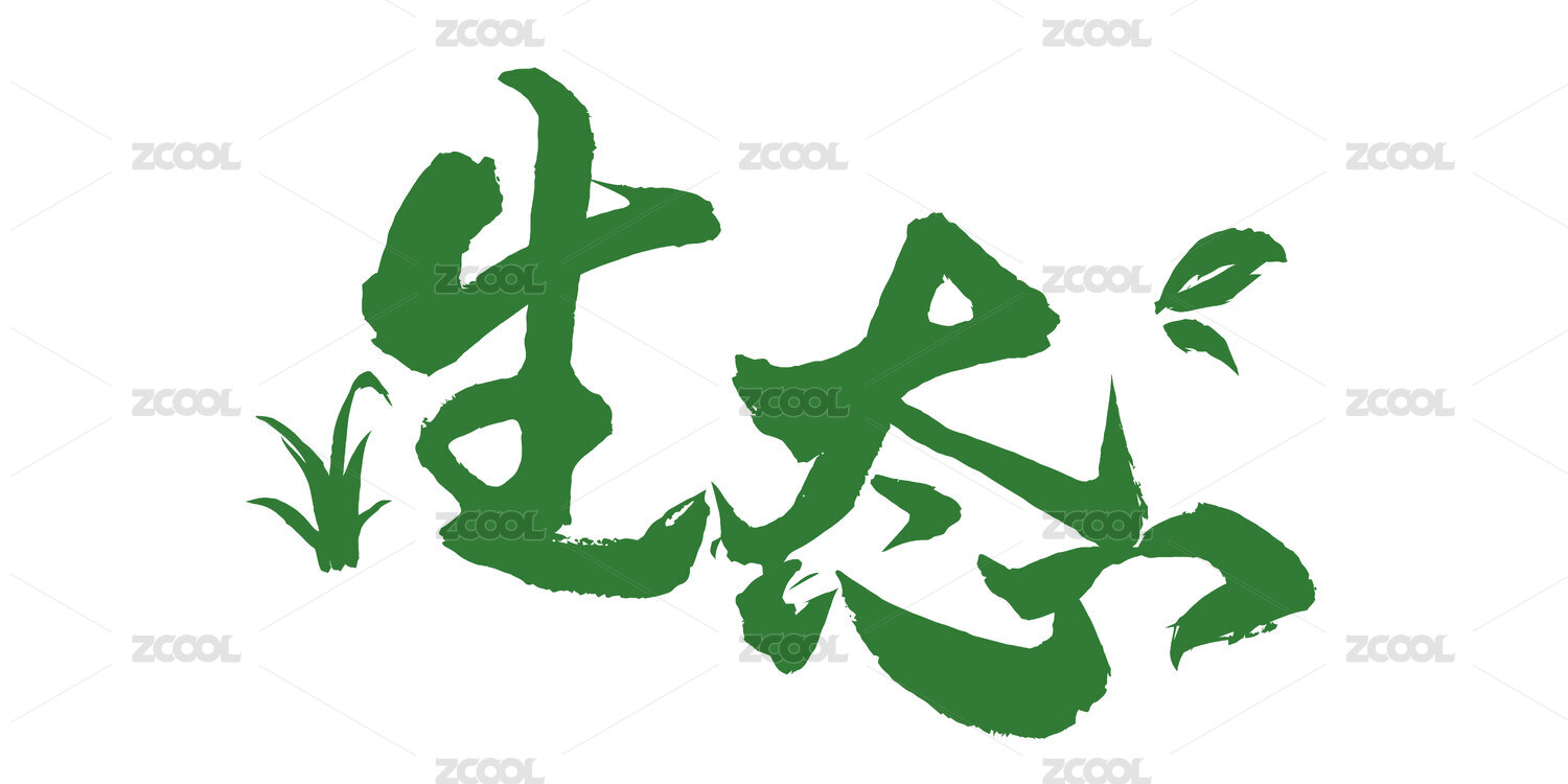 矢量绿色生态手写毛笔字体