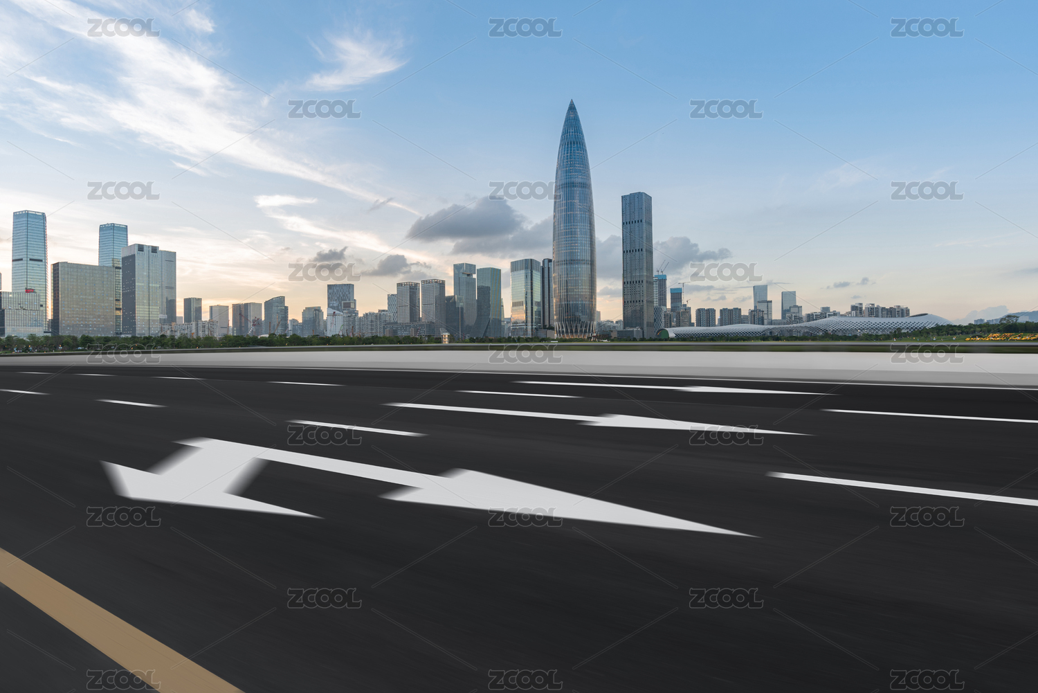 中国广东深圳市区城市天际线和空白无人的机动车道