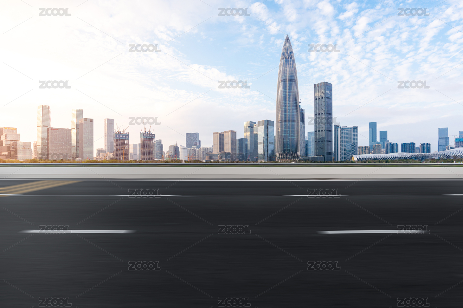 深圳后海CBD城市风光和空白的机动车道