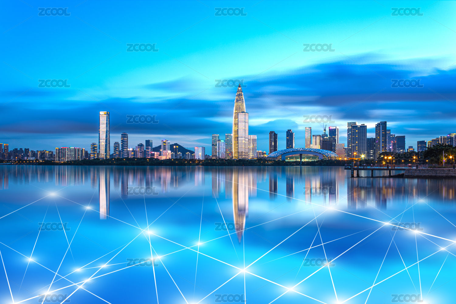 深圳福田区城市天际线和5G大数据概念