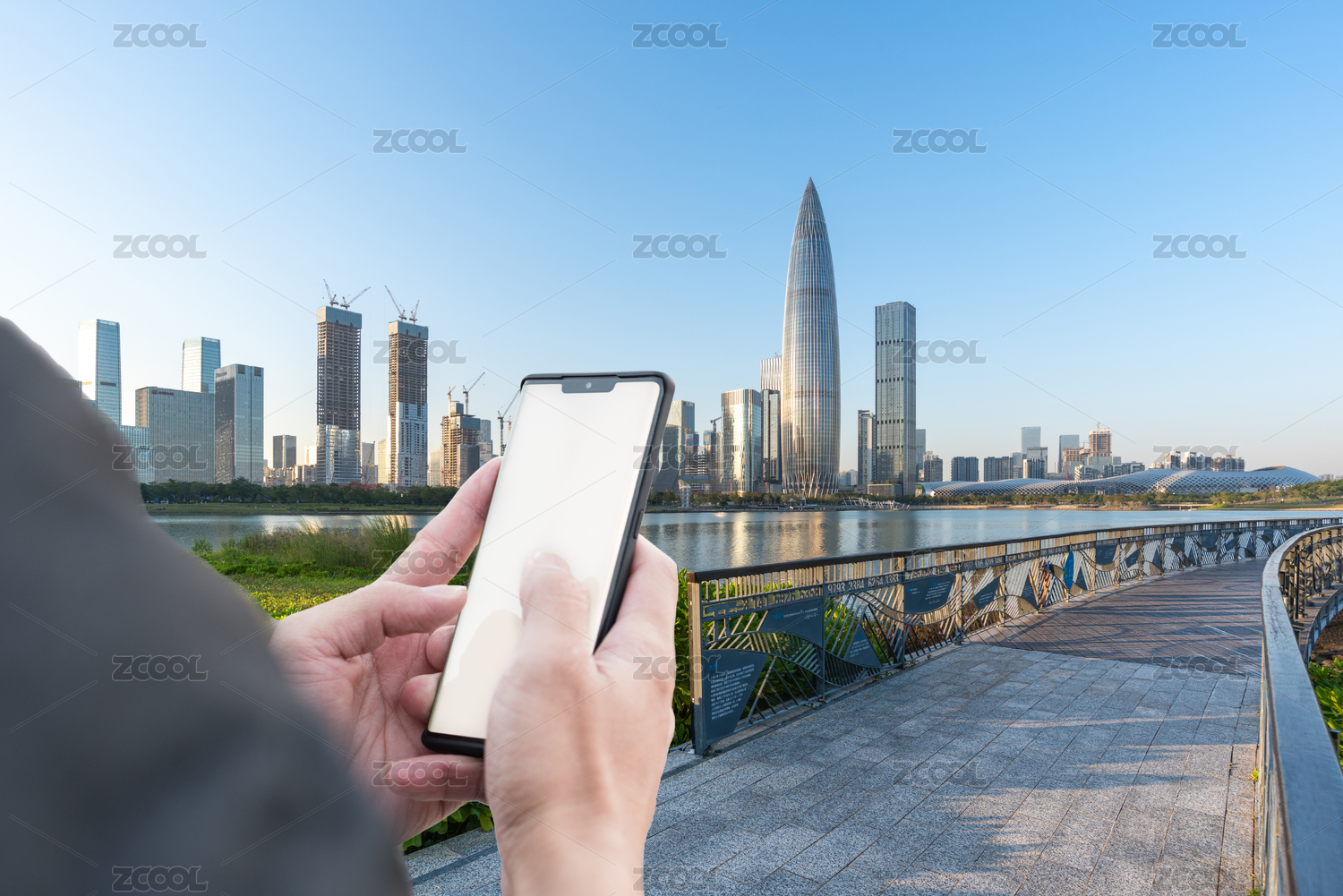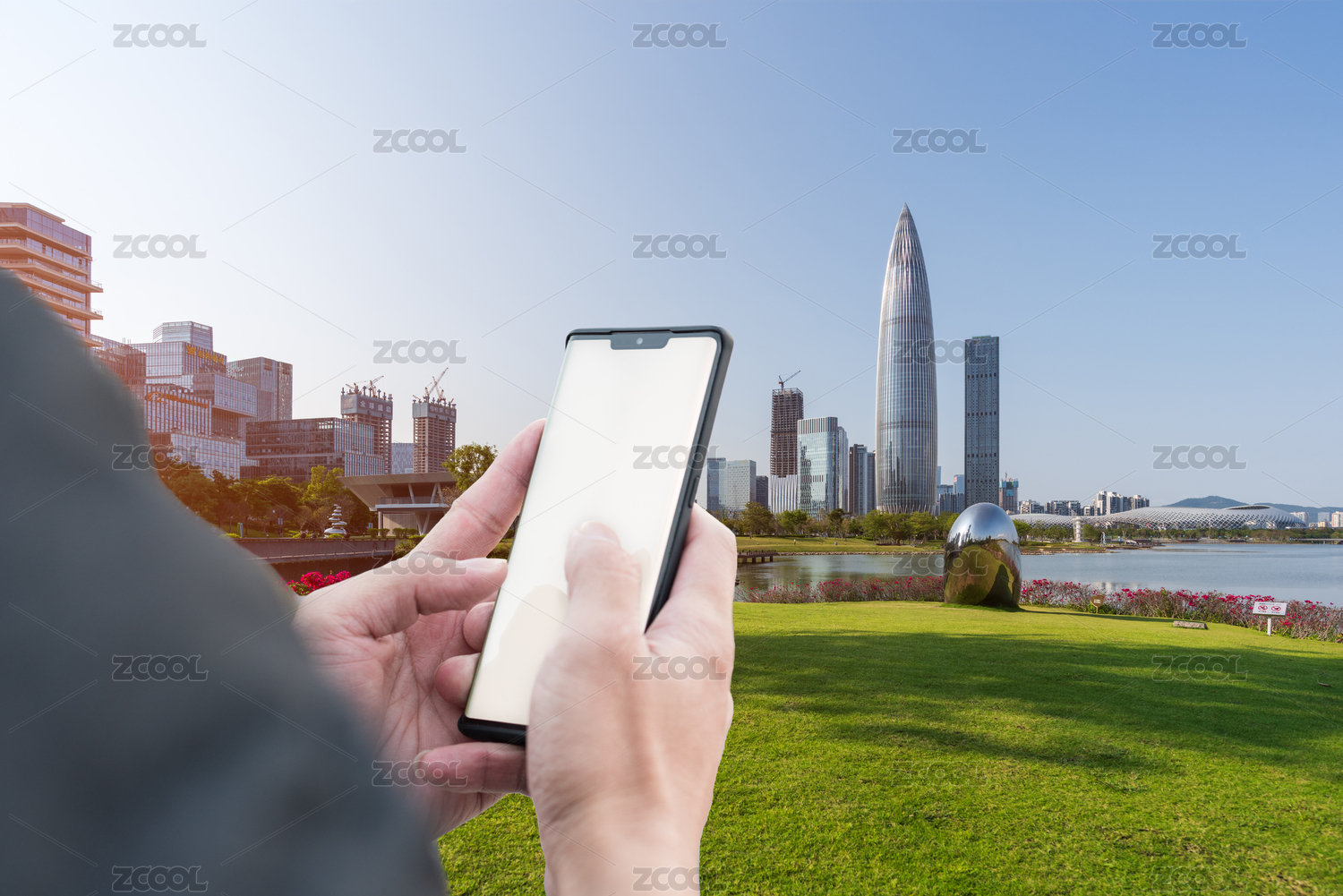 手,手机,社交网络,深圳,城市,建筑,摩天大楼,人才公园,华润大厦,城市风光