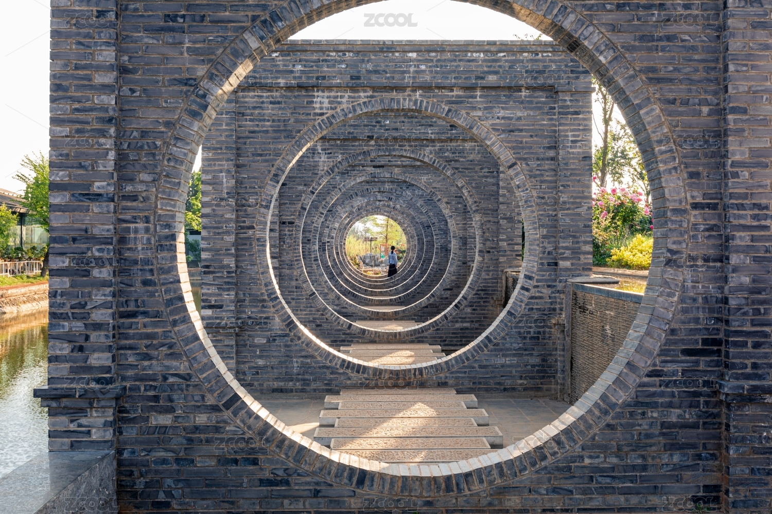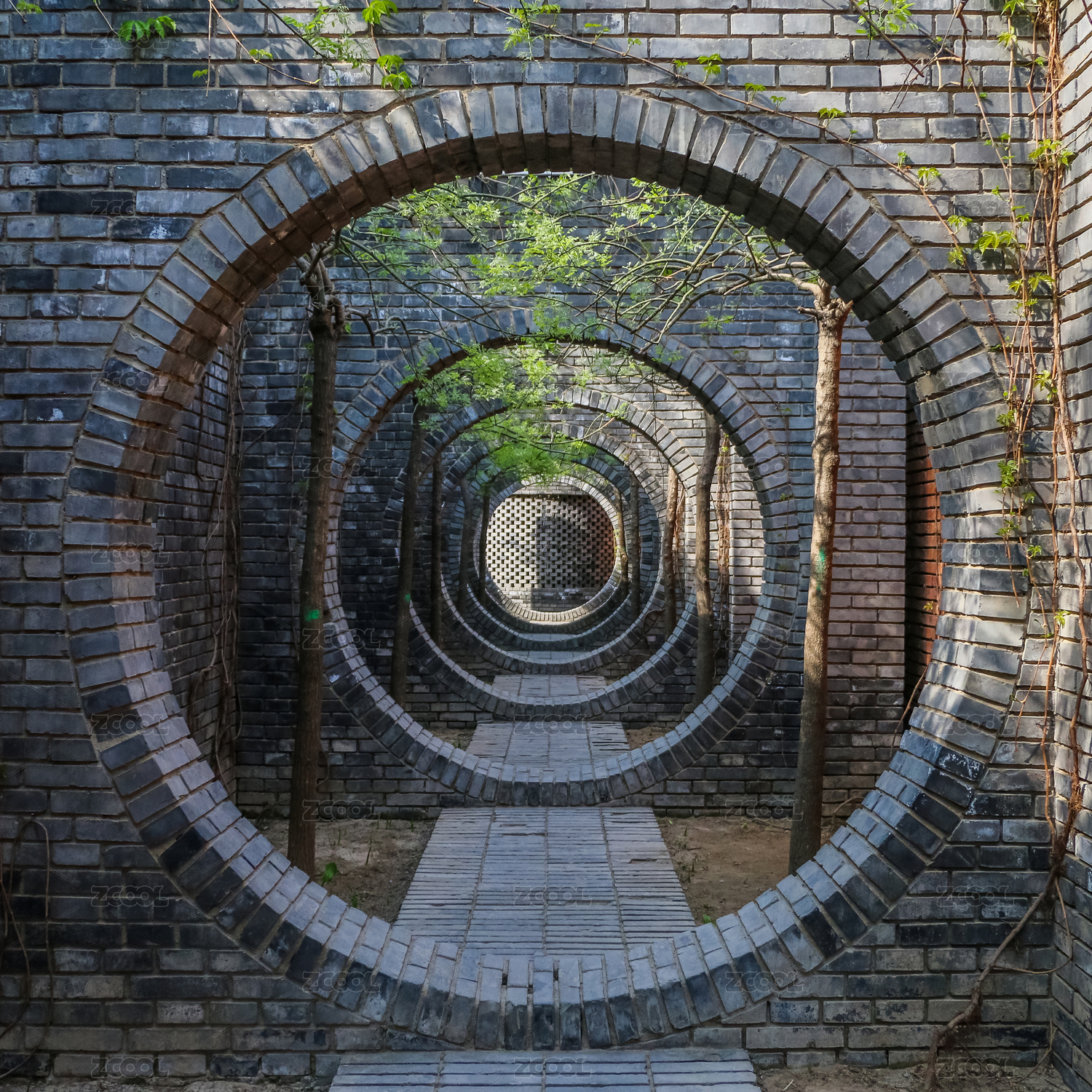 圆形,建筑,户外,红砖美术馆,艺术,环境,走廊,砖墙,路,建筑外部