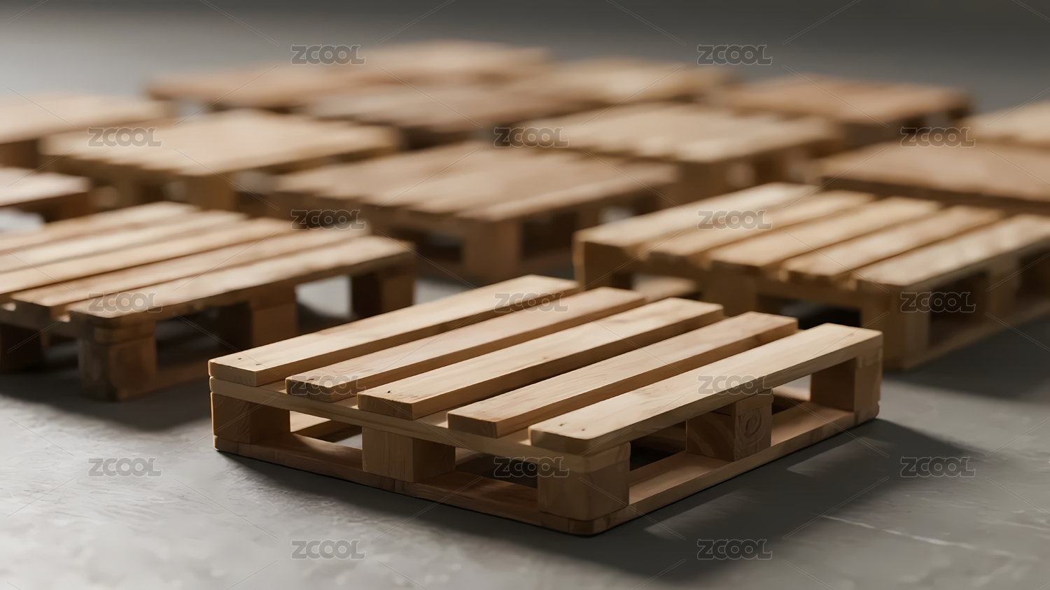 木制的方形产品展示台放在灰色的水泥砖块地面上