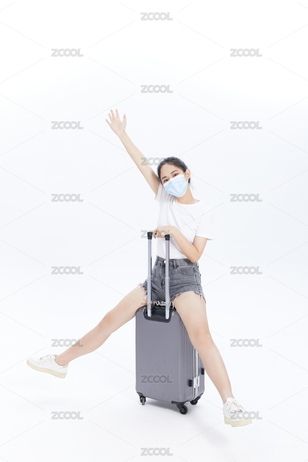 出游,出行,行李箱,休闲装,女孩,女性,大学生,旅行,拉杆箱,开心