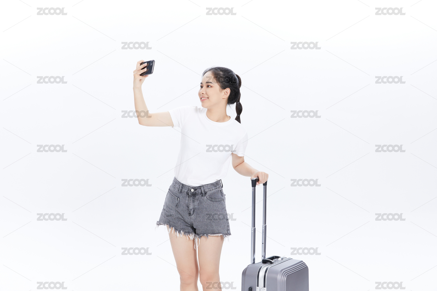 影棚拍摄夏季准备出行旅行的青年女性形象