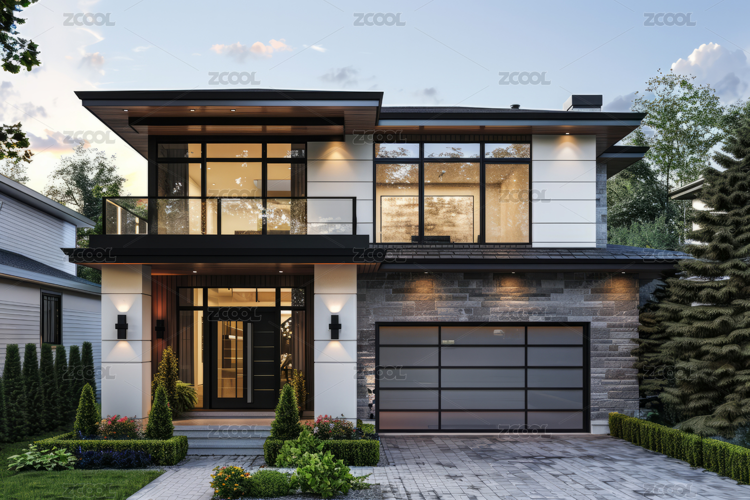 别墅,设计,建筑外部,aigc,现代,豪华,住宅,夜景,灯光,建筑