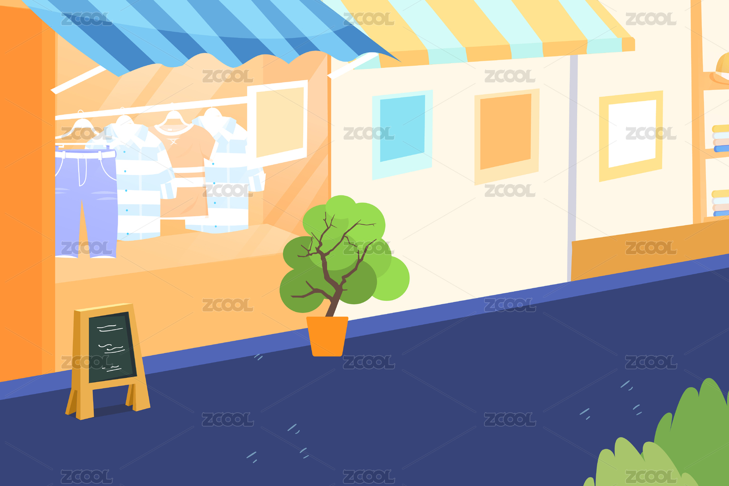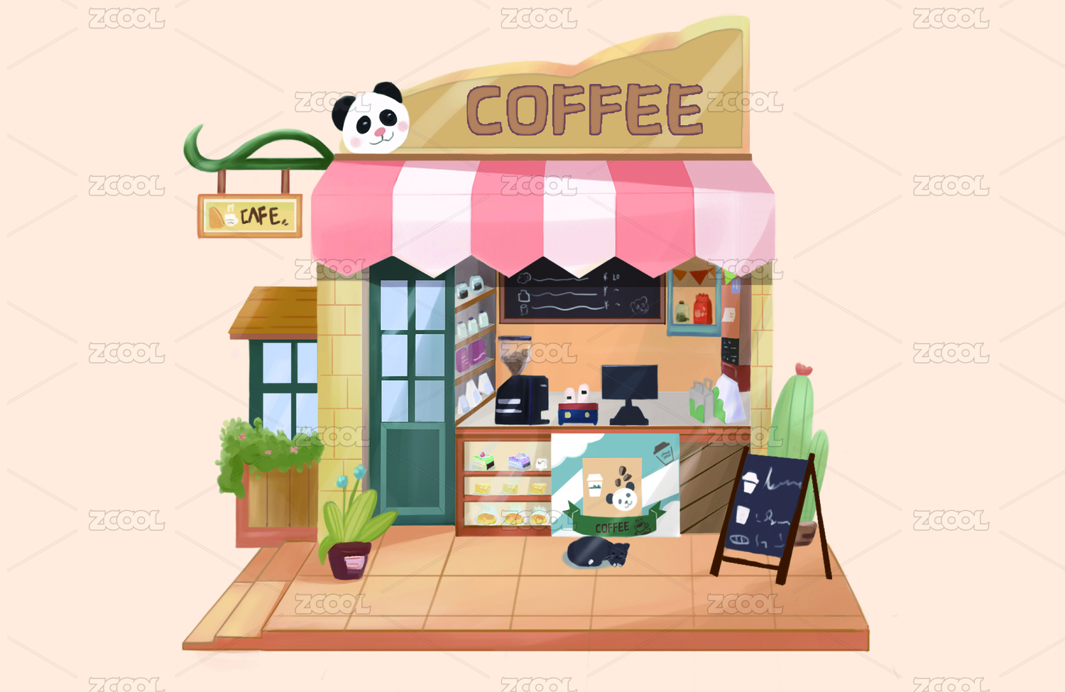 治愈可爱兔子面包房手绘水彩风房子儿童插画