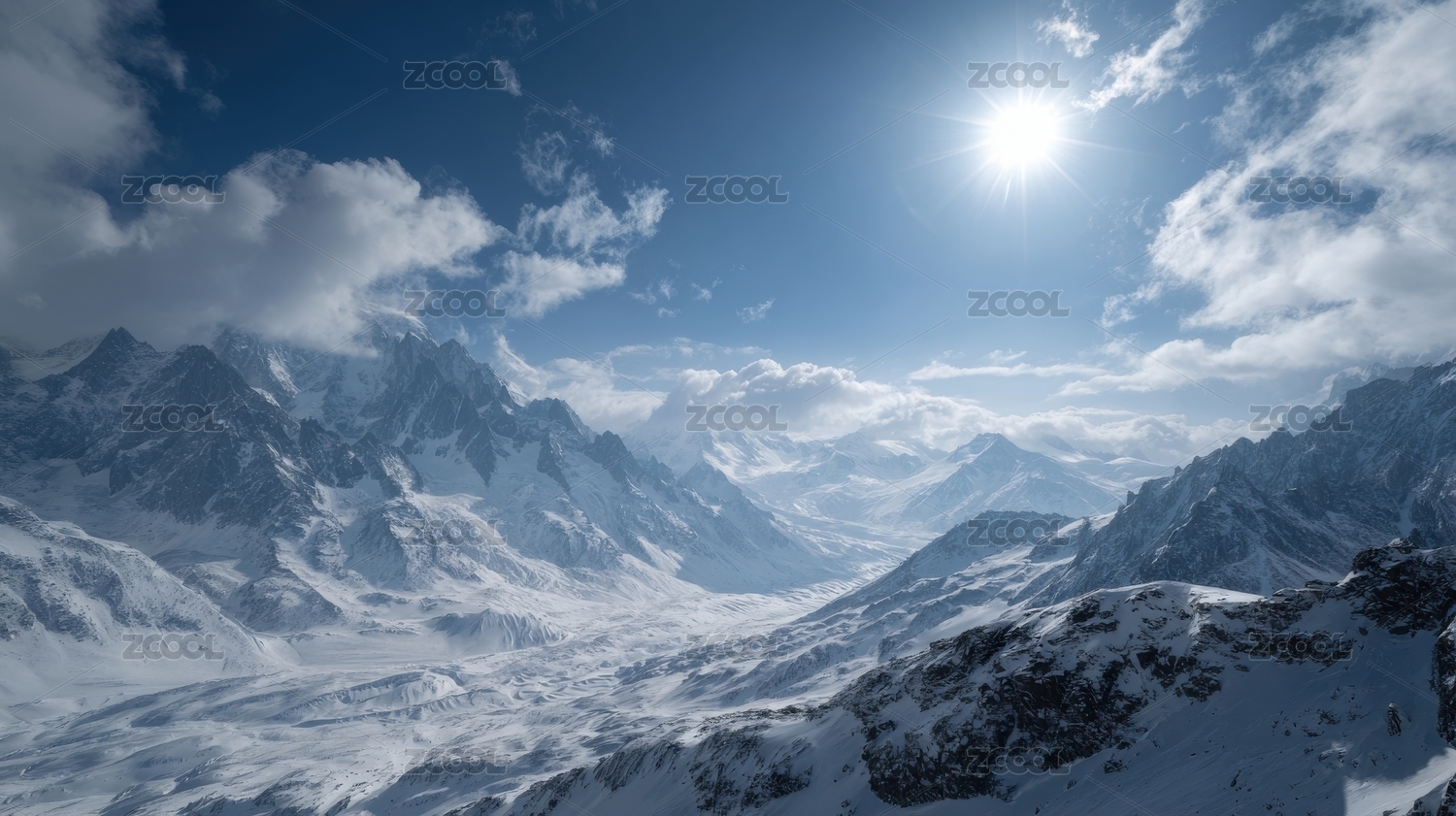 中国西藏蓝天下喜马拉雅山脉雪山群峰