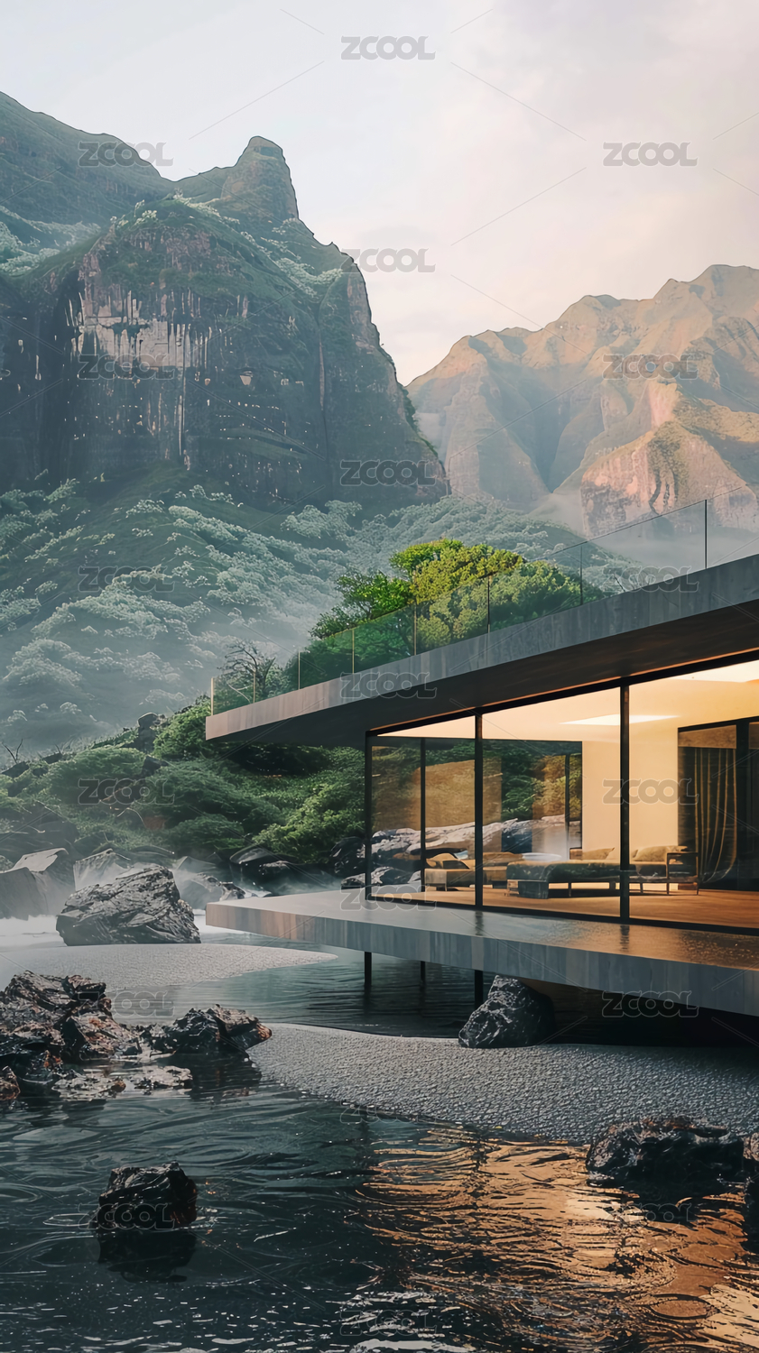 山峰景观现代建筑空间场景