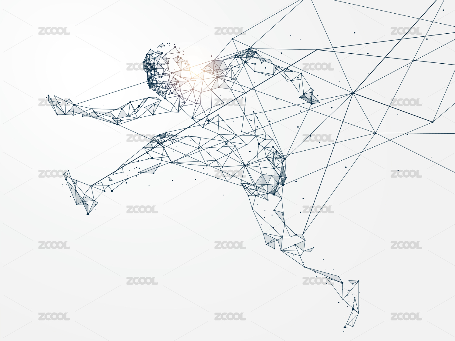 网络链接、点线面组成的人、奔跑的人类。