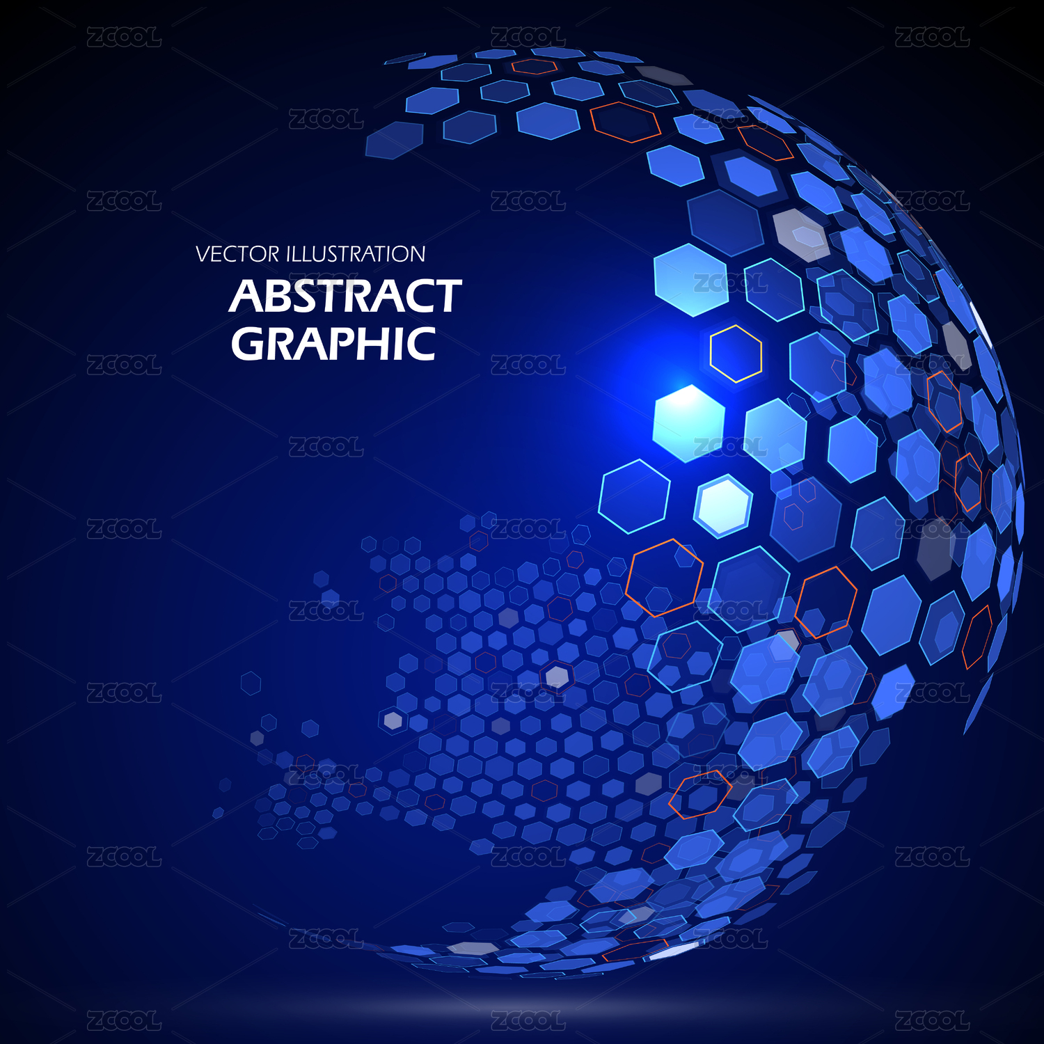 抽象粒子组成的发光立体球,全球化合作